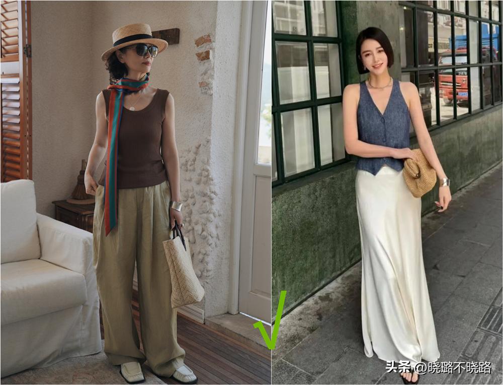 反觀這組的搭配就讓人視覺舒適。要麼是前者的服裝極簡大氣,搭配着光澤度、設計感都比較有辨識度的配飾去令人眼前一亮;要麼就借鑑後者服裝比較有看點,而簡單的配飾作爲輔助加分,讓整體時尚感鮮明的方式即可。