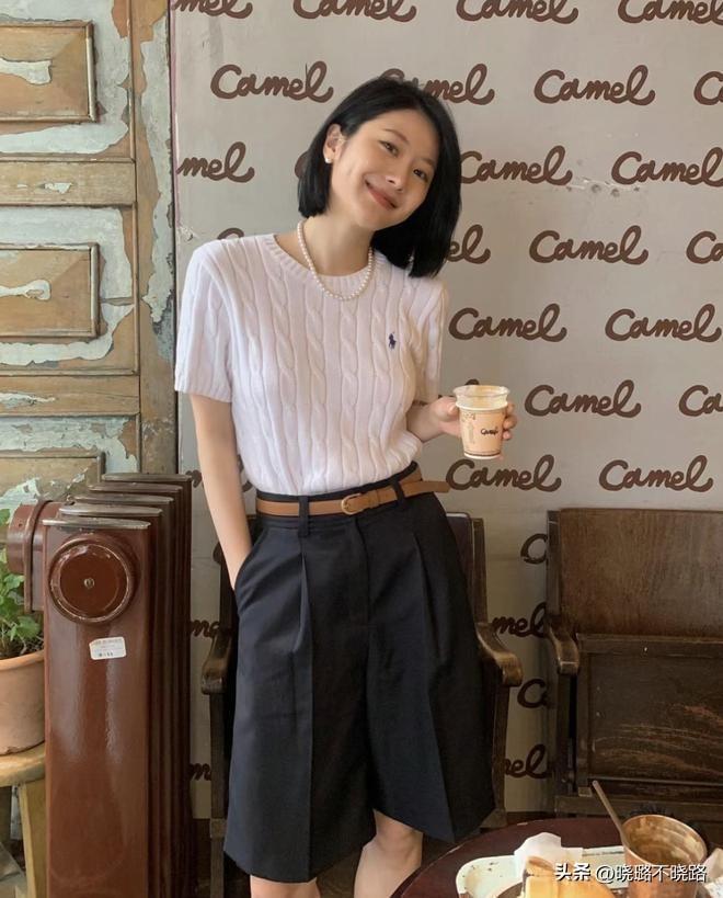 像這種衣服的版型屬於比較修身的類型,主打突出的就是上半身的線條感。選用的配飾可以適當增加尺寸,比如這套穿搭所用的珍珠耳環和項鍊,用稍微立體感強一些的珍珠配飾來突出這種上衣的精緻感,以及由飾品的大來襯托衣服的“小”所帶來的修身感,也是極具有魅力的。