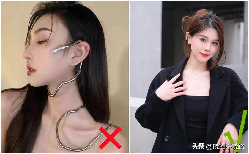 不要選擇很誇張的外形的配飾,那些複雜的造型只適合上鏡,而日常搭配這些看着都是很不自然的,甚至會顯得突兀、奇葩。我們要以極簡爲主,可以有款式,但是大小要適中。大小稍微放大的時候,款式就不要花裏胡哨的,就ok了。