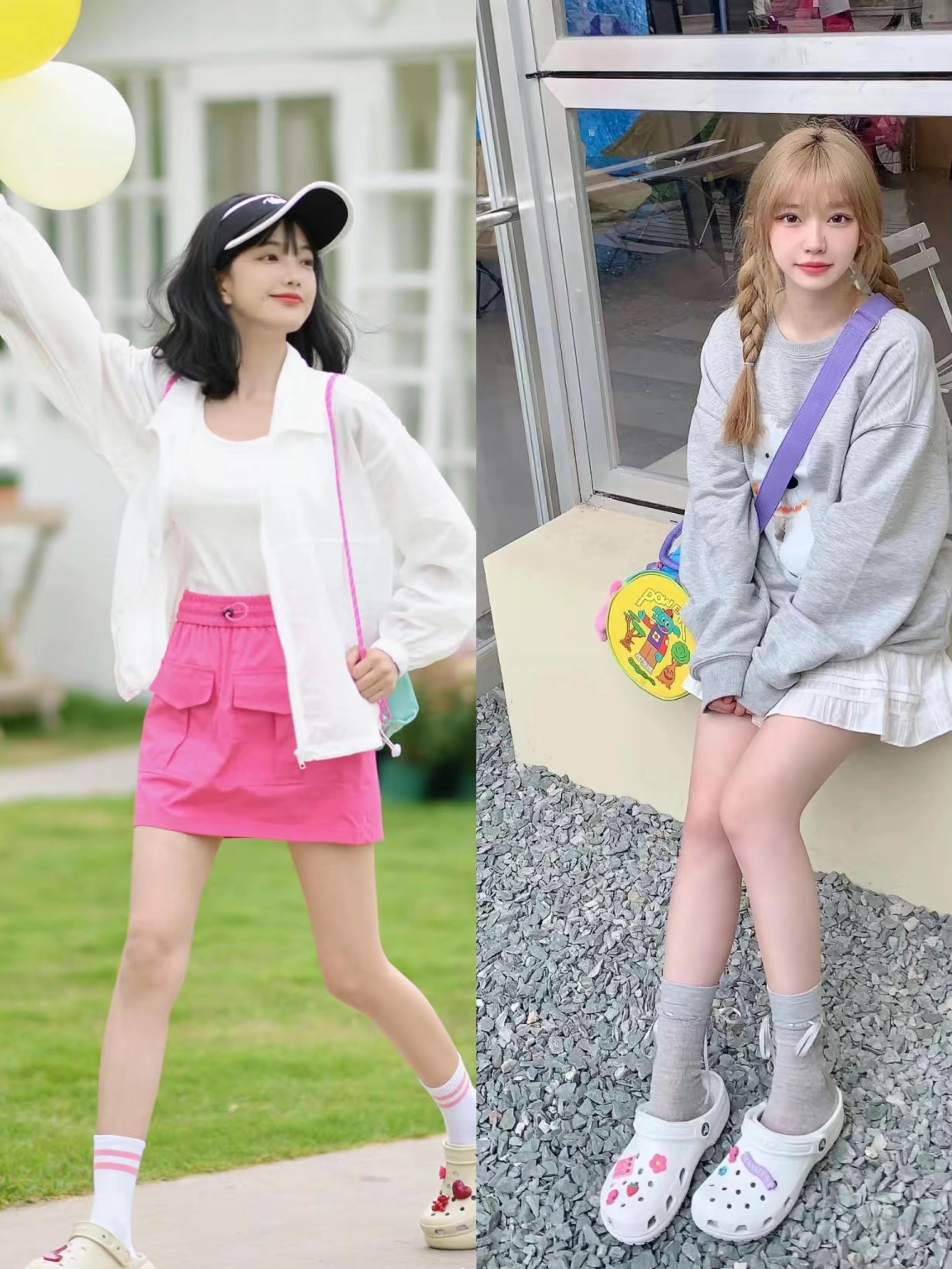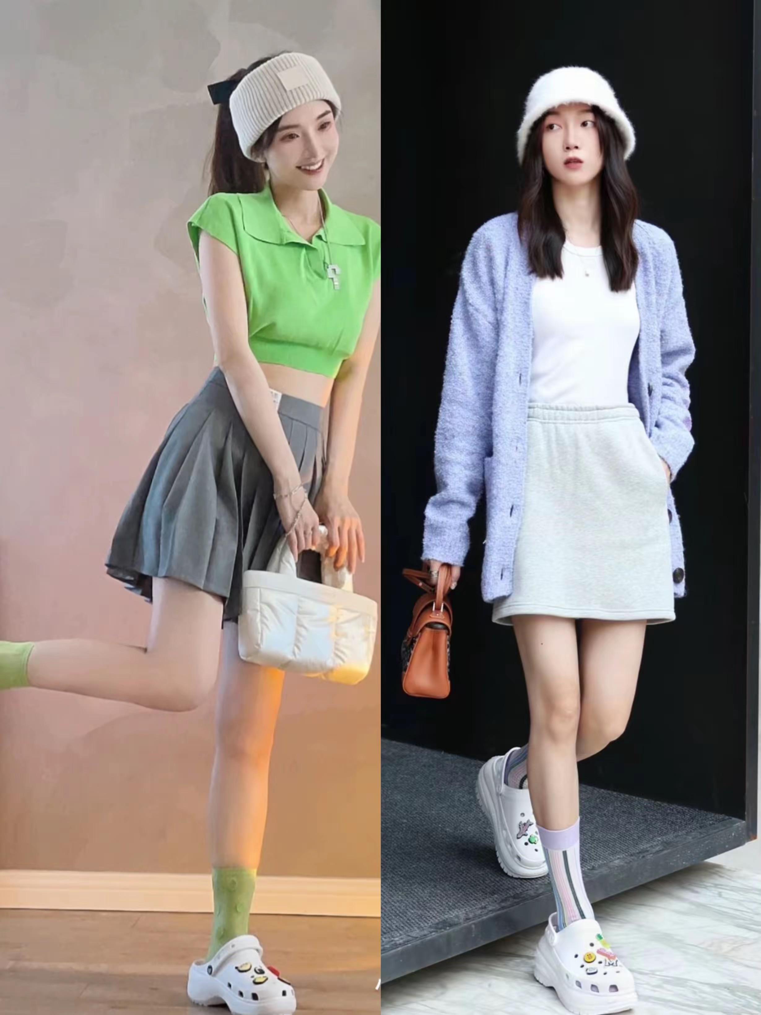 我們用洞洞鞋來搭配超短褲、或者個性的半身裙,都可以顯得比例優越,有一種大長腿的既視感。洞洞鞋的穿搭,也更加得心應手。