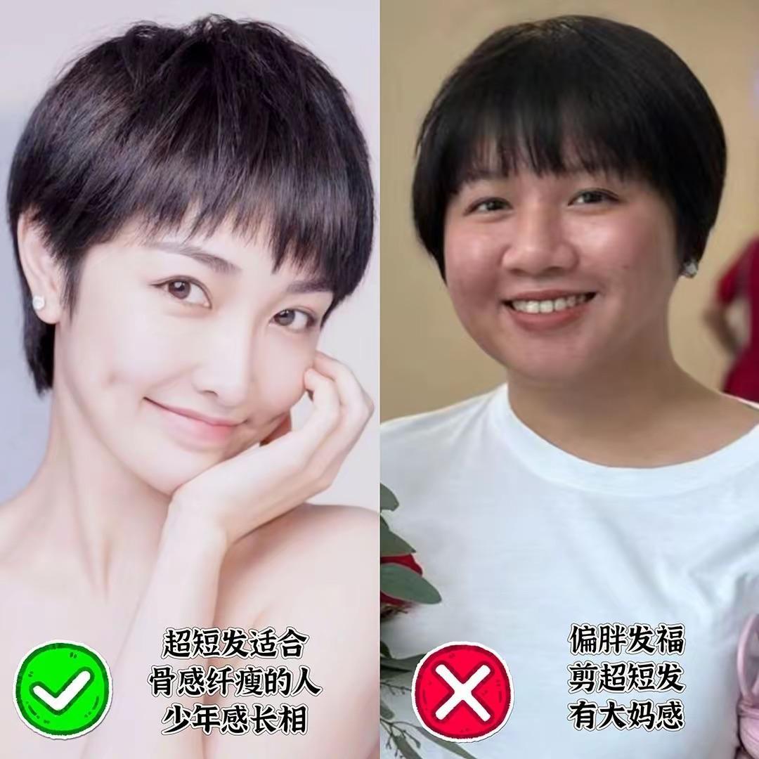 看似清爽利落、帶一點帥氣的超短髮。只適合骨感纖瘦、少年感長相的女性。如果臉型偏胖、發福的中年女性,剪出來就滿是大媽感。