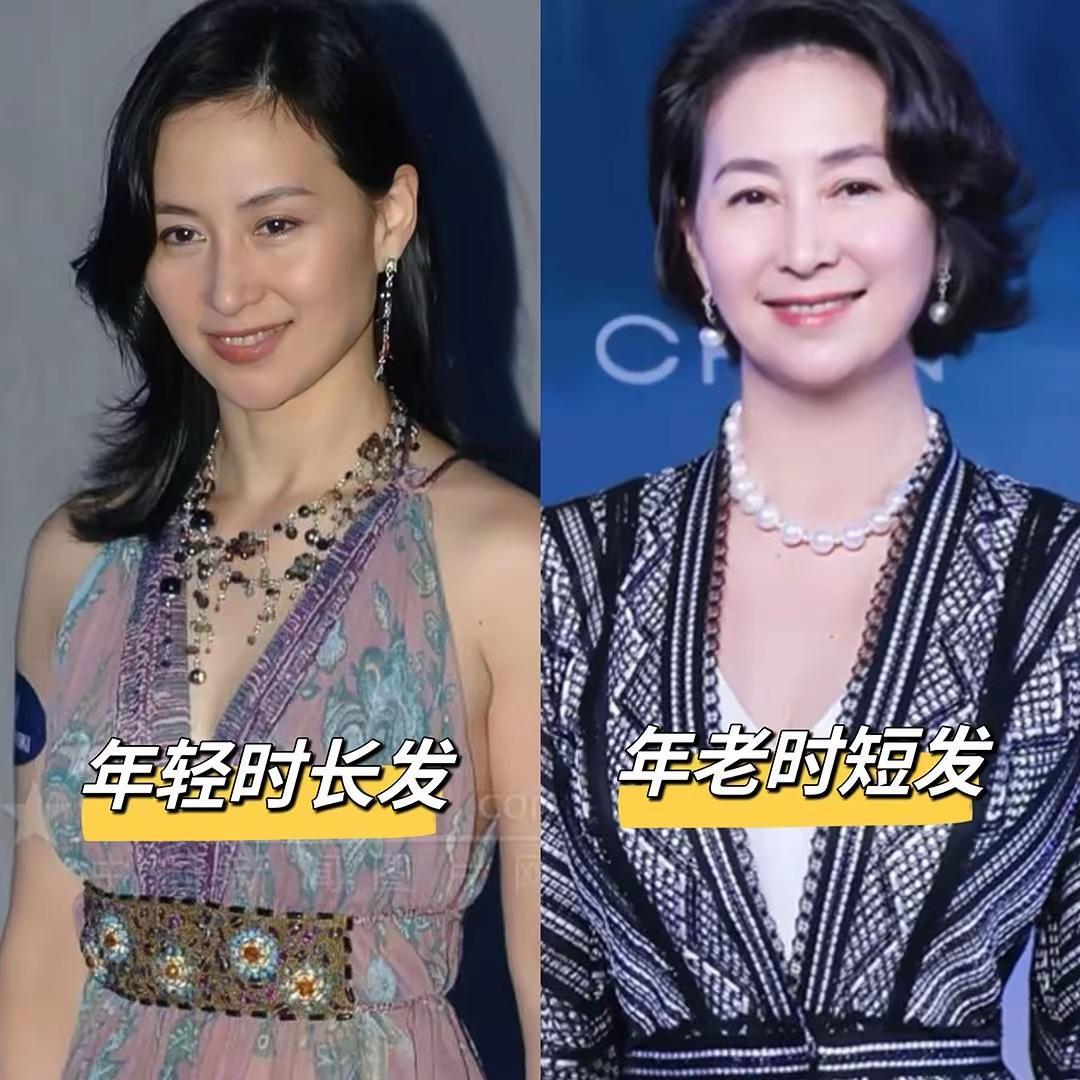 看年輕時候的何超瓊和年老時候的何超瓊,在髮型上也做出了明顯的改變。年輕時披肩長髮,溫婉端莊。年老時,利落的齊耳短髮、貴氣優雅。