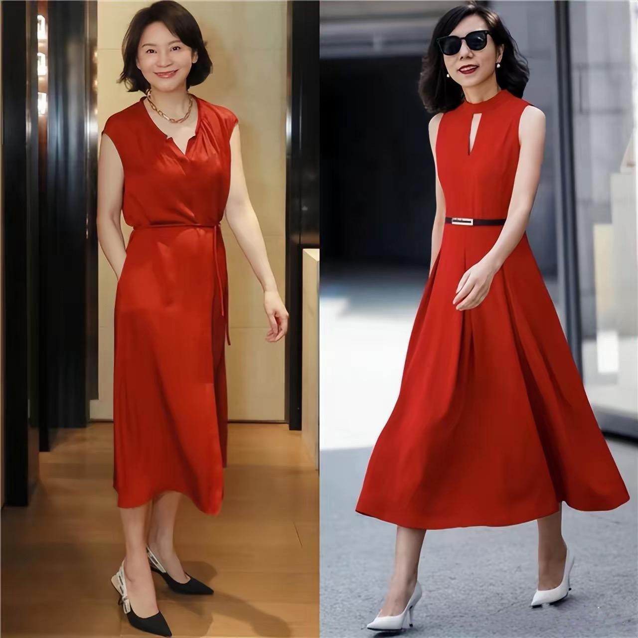 五六十歲的女人,如果參加小聚會。穿一條紅色系的收腰連衣裙,端莊醒目、品味高級。整個人閃耀着光芒,格外迷人。紅色收腰連衣裙,配小露膚也格外的洋氣。