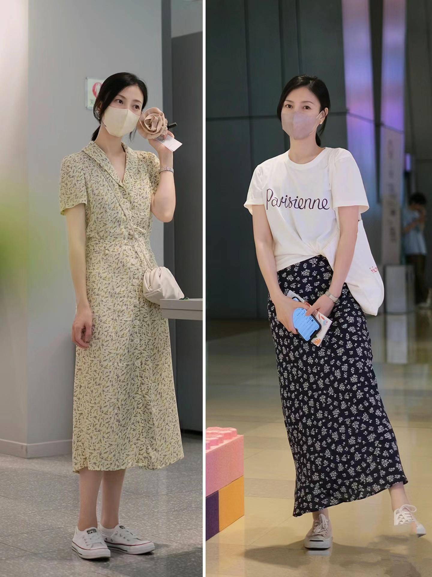 我們選擇碎花裙的時候,儘量搭配小量感的碎花元素,視覺上集中性更強、不會拉寬橫向比例。碎花連衣裙,可以選擇淺色系,更加清新溫柔,碎花半身裙配基礎色T恤,也很清爽。