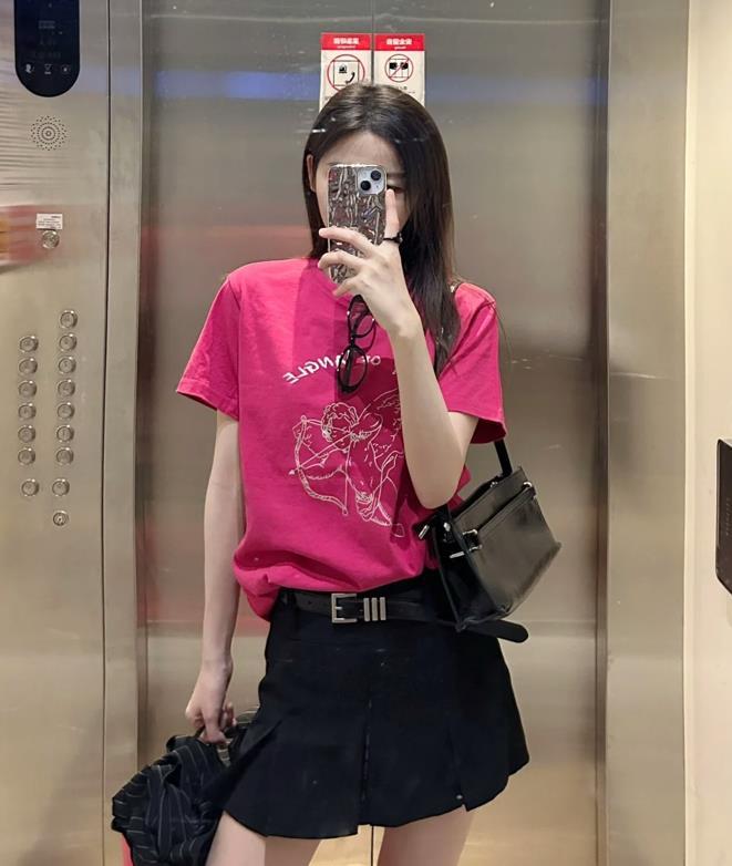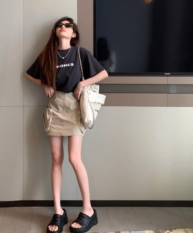對於小個子女生來說,若是選擇半裙來穿的話,那麼短裙會更合適一些,膝蓋以上的的長度,穿起來更顯腿長和高挑,搭配火龍果色的寬鬆t恤,不僅吸睛還洋氣,這個夏天這麼穿也太亮眼了。