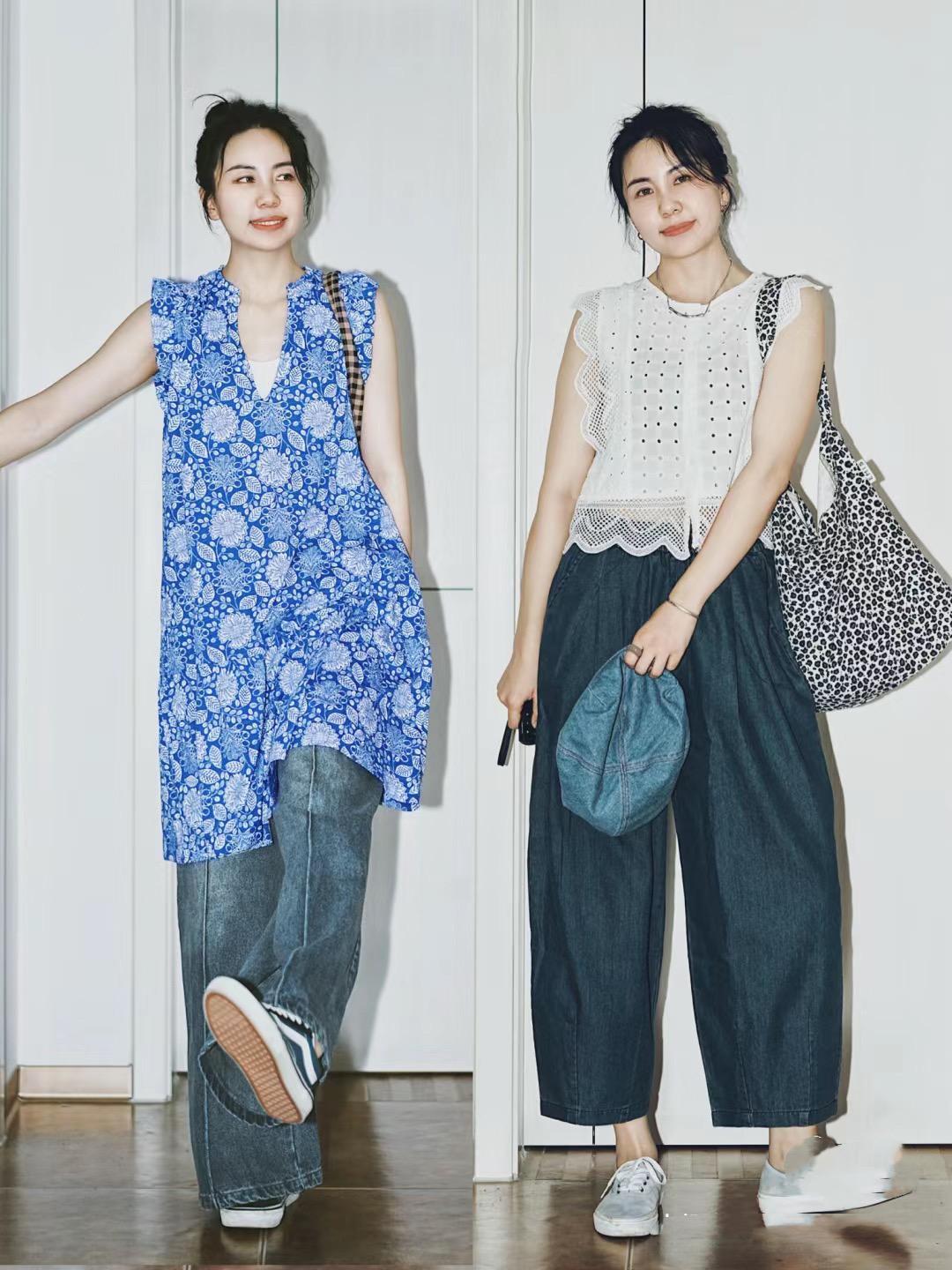 牛仔闊腿褲,想要穿出復古、文藝範,色彩和款式的搭配都很重要。