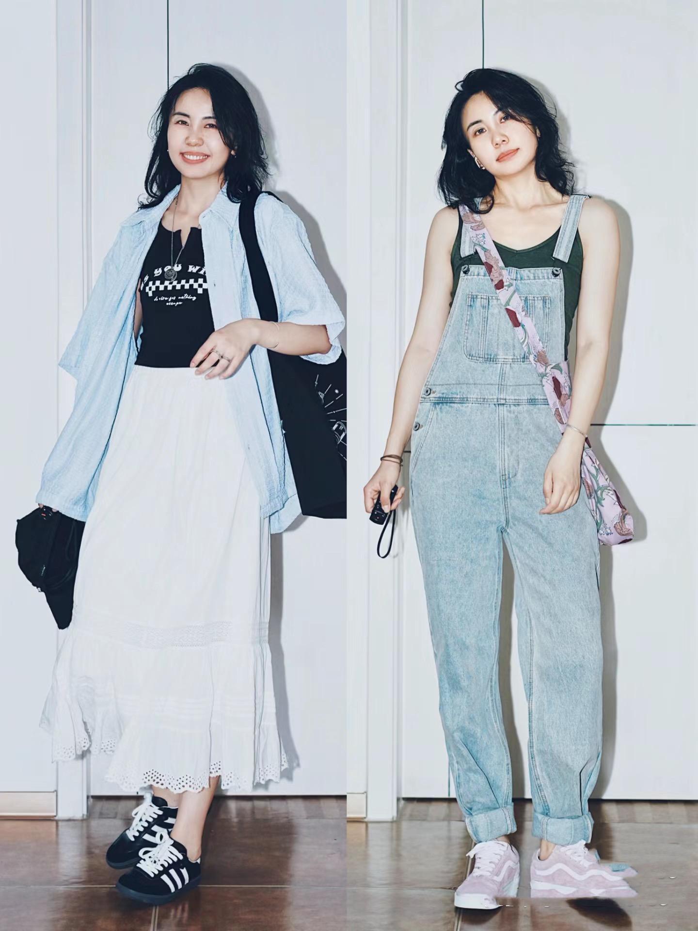 牛仔揹帶裙,也是夏日必備的減齡神器。即便是到了三四十歲的年紀,還是可以用來扮嫩的。