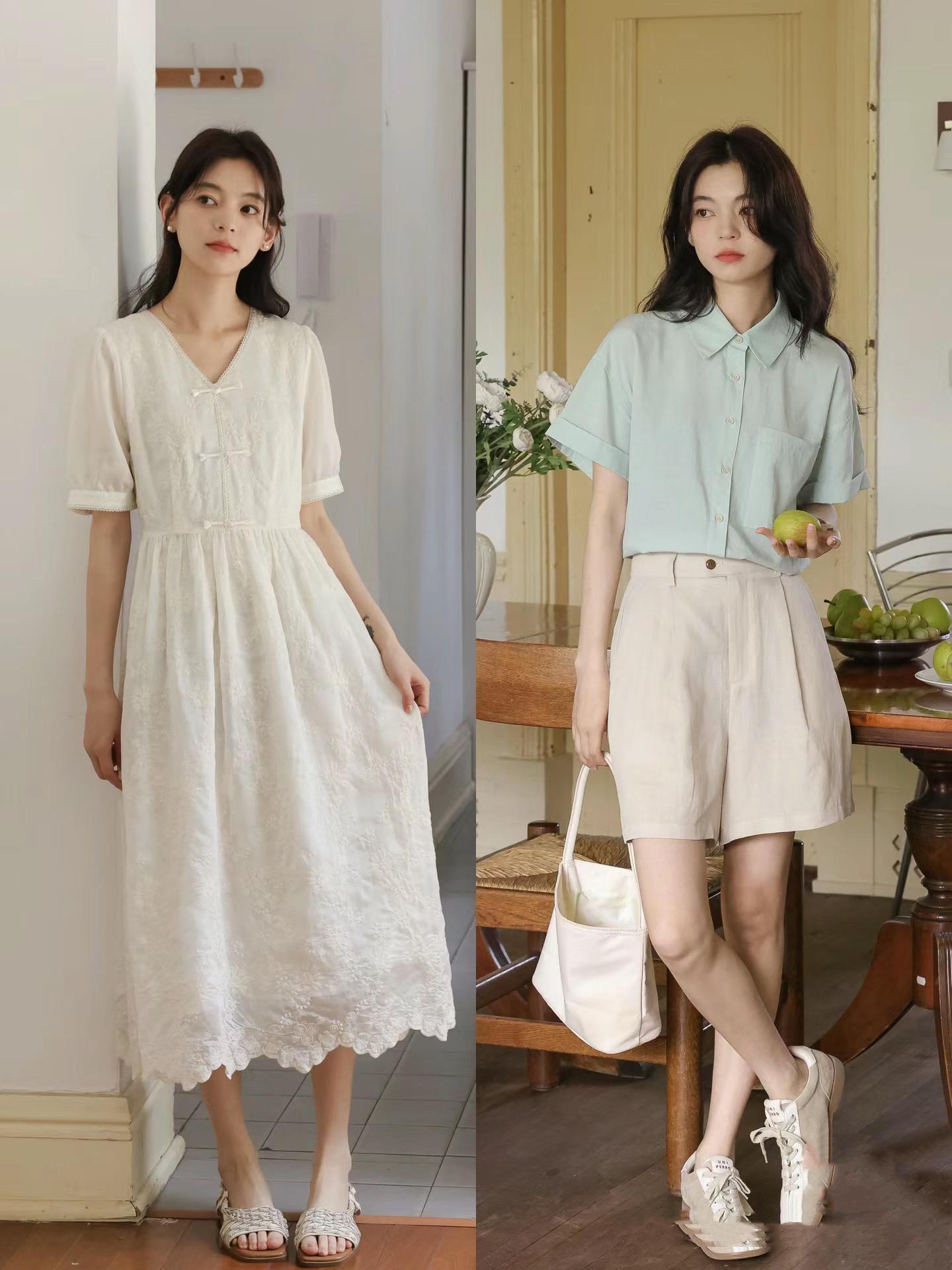 小個子女生的慵懶甜美、文藝清新,都應該通過天然成分的面料來塑造。比如亞麻、棉麻、苧麻、真絲的材質,透氣性、舒適度更強,帶着文藝範、也更有腔調感。