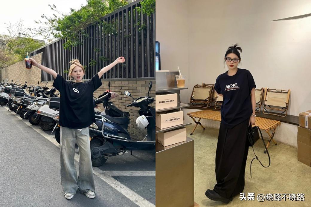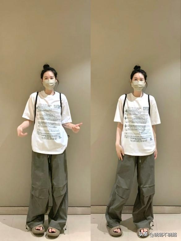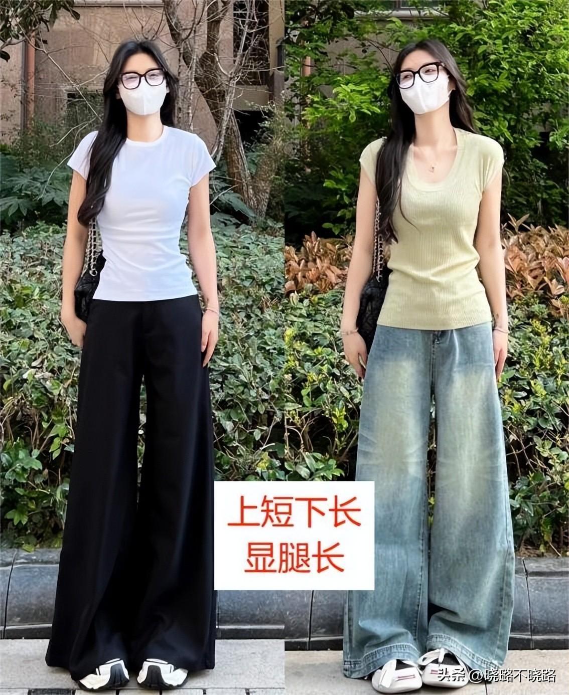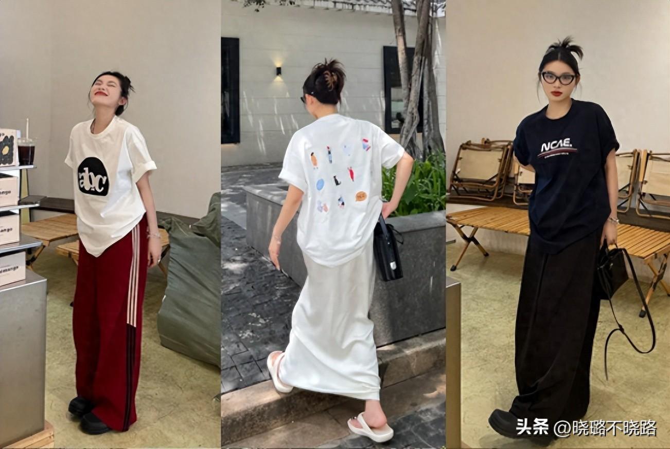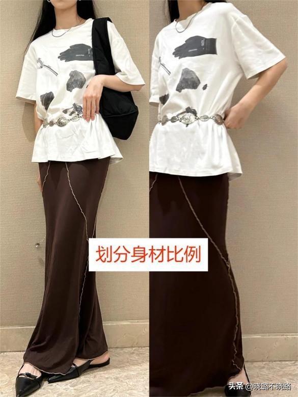 用T恤上衣去組合裙裝或者褲裝的時候,都要平衡適當的加長款式,畢竟是裙襬和褲擺的延長性,決定了你的身高,想要優化身材比例的話,下半身着裝的面料都要儘可能的延長,對於身材的遮蔽感更好,也讓你穿平底鞋的時候無需擔心自己的身高問題。