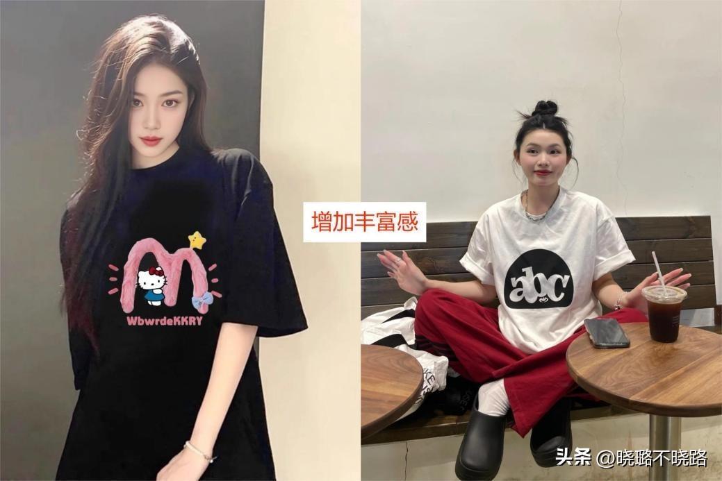 偏短款設計的T恤下襬儘量不要收緊,因爲這不是一件緊身款式的上衣,穿出比較得體的鬆垮效果纔會更加舒適,而且也不會暴露你的身材問題,肩膀寬度可以藉助有挺括面料的T恤來衡量,體型偏胖的女生也可以穿搭的特別舒適。