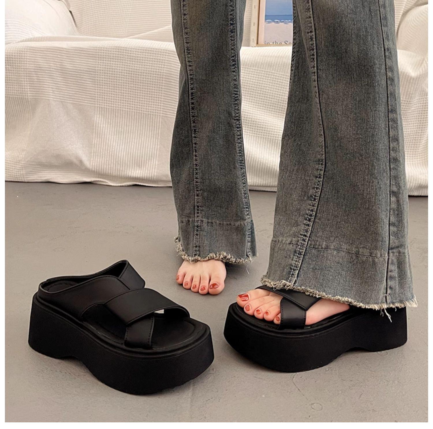 但是這種底真的好醜。殊不知樣這種超厚底涼鞋並不會拉長我們的腿部比例,只會顯得又穩又重,就像踩高蹺的小丑,體驗感極差,就像腳底拖着兩塊磚。