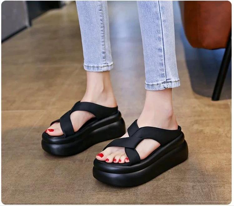 哇,這麼厚的鞋底,小個子福音啊。設計這種涼拖的人肯定是想着腿長不夠啊,用鞋底來湊。
