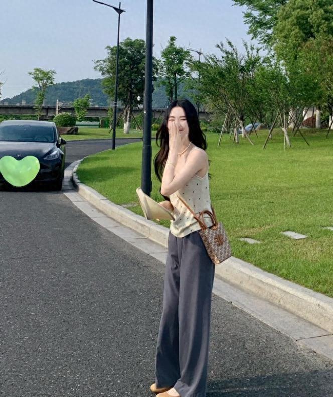 趙露思同款穿搭,我是真的悟了,鬆弛、休閒又不失甜美,粉色運動背心混搭山本闊腿褲,毫不費力就可以穿出時髦的搭配,這種寬鬆版型的褲子,可是很藏肉顯瘦的,既可以讓你穿得清爽涼快又好看。