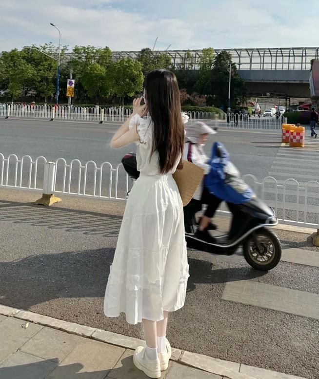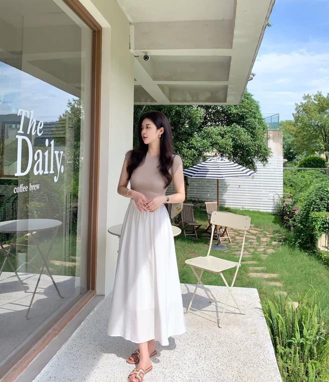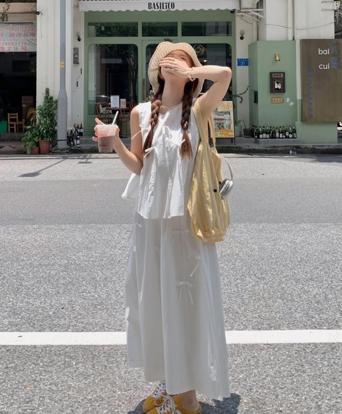 這一套穿搭看起來也太仙氣了吧,自帶夏日氛圍感,白色背心+白色半身長裙,也太仙氣和溫柔了,同色系的組合,不僅時髦還高級。選擇一雙運動鞋來配,有種毫不費力的休閒感。
