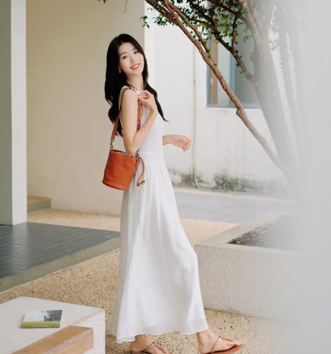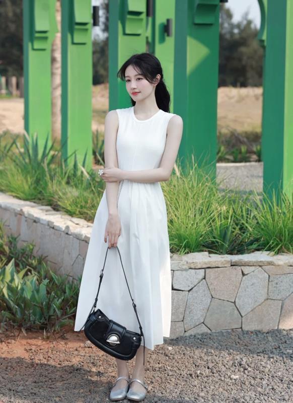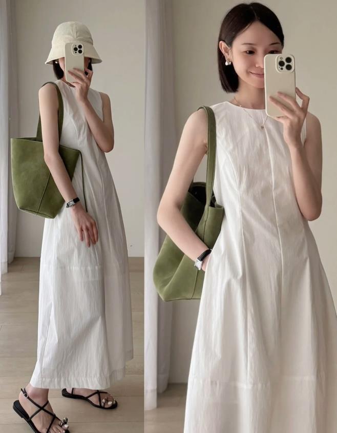 在夏日,你又怎能錯過一條白裙子呢?無袖款式的連衣裙,真的太適合夏天了,很清爽涼快,簡約的款式,輕鬆能打造出高級感。裙身版型是寬鬆的,不僅能遮掩住身上的贅肉,還顯瘦,出門隨便配一雙平底涼鞋,就能穿得很舒適自在。