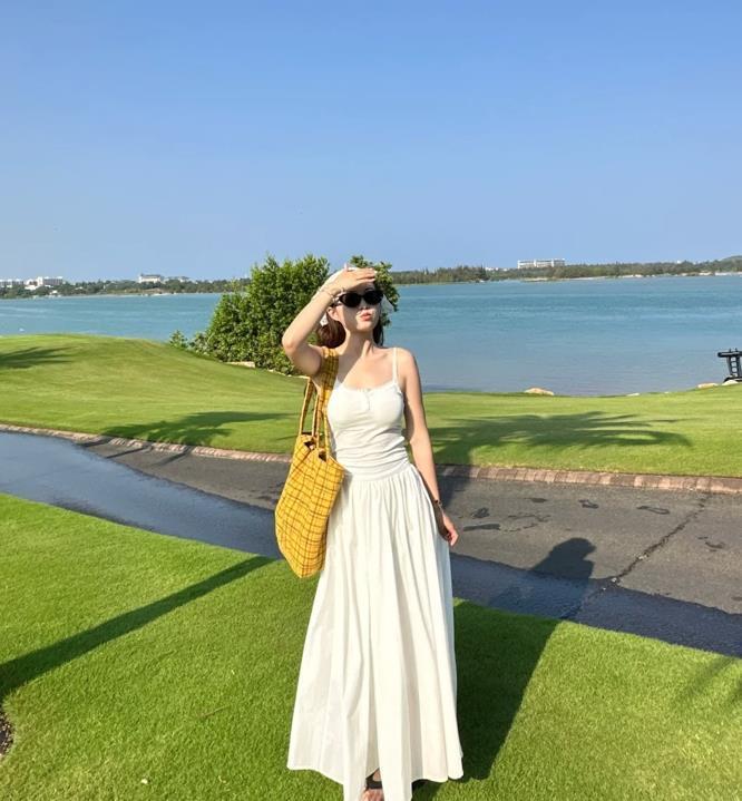 綠色草地和小白裙實在是太配了,吊帶連衣裙,自帶性感又不失清涼氣息,出門逛街或者是約會都合適。隨便踩着一雙平底涼鞋,度假這麼穿也美美的,回頭率極高的。