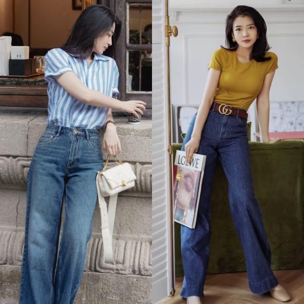 寬鬆的牛仔闊腿褲,融入復古風的元素,可以包容腿部線條、不管哪一種腿型都可以放心穿着。寬鬆的牛仔闊腿褲,搭配收腰的短上衣,洋氣又活潑。