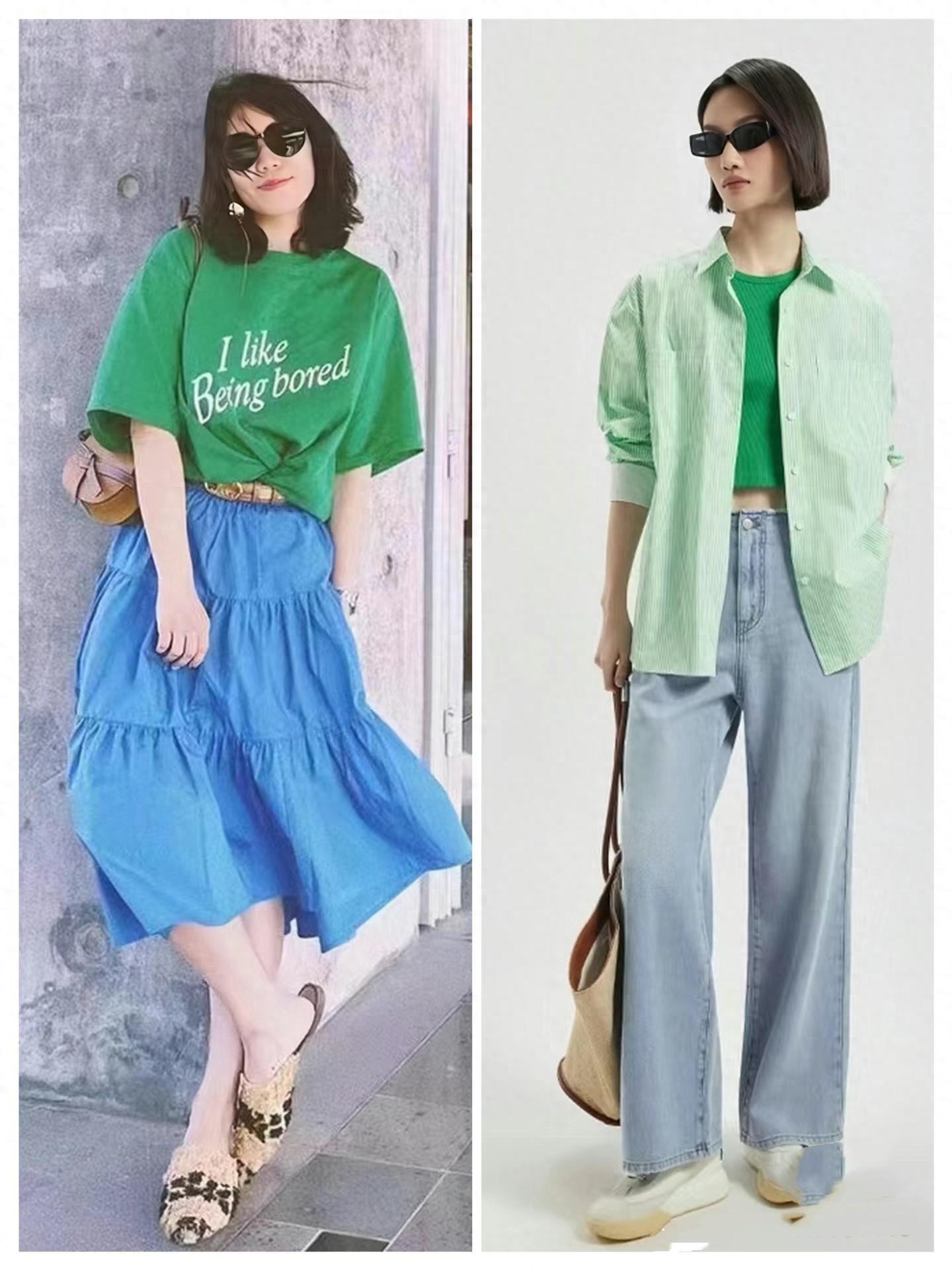 想要更加時髦、惹眼一點。高飽和度的綠色、與高飽和度的藍色,可以更完美的契合。