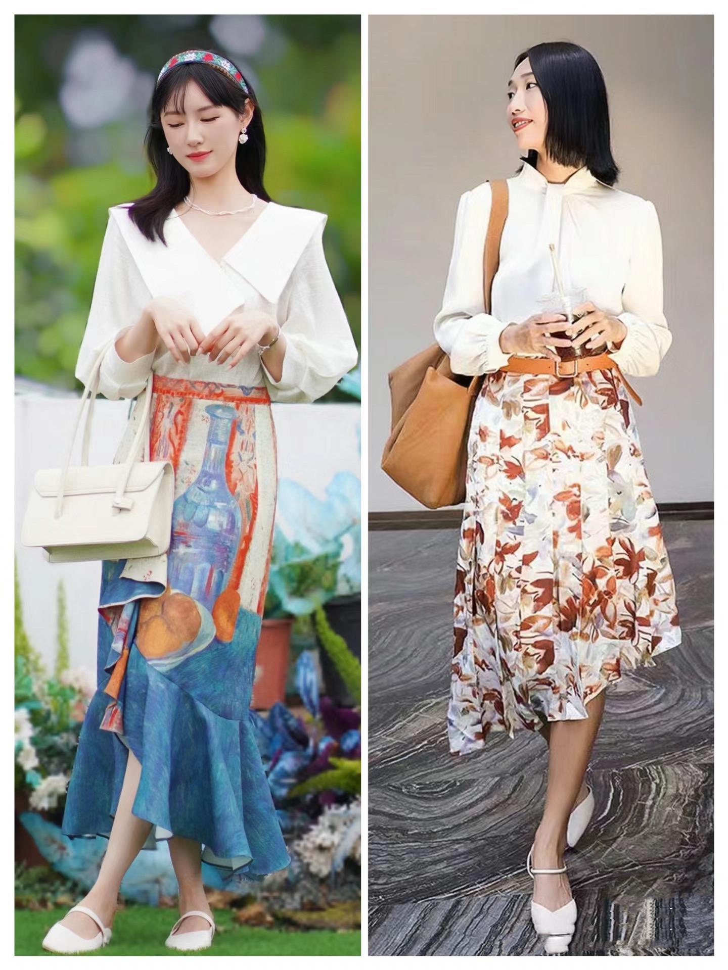 我們在選擇白襯衫的搭配時,也需要注意白色襯衫儘量搭配白色底色的半身裙。不管白色襯衫配哪一種顏色,都要保持色不過三的原則。