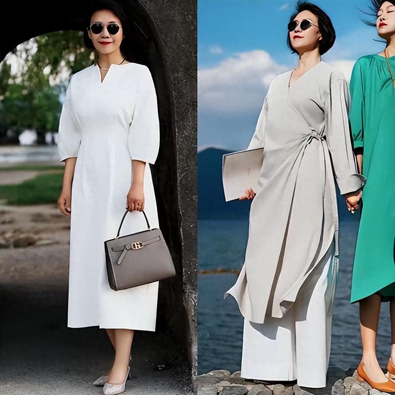 帶有復古氛圍、特別有腔調感的麻織連衣裙,因爲面料不夠貼身,比較容易顯壯實。