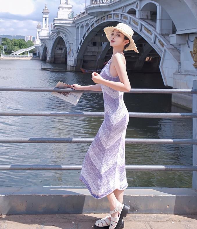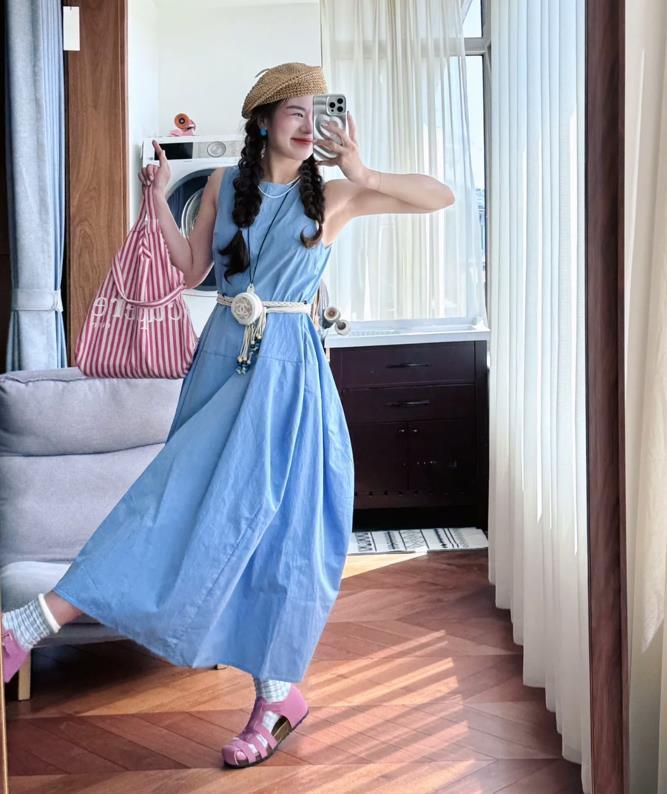 藍色的裙子,在視覺上就是給人一種降溫的既視感,這一款藍色無袖連衣裙,實在是太適合夏天了,有些寬鬆的版型,對身材也有着很好的包容性,如果你希望對身材進行修飾的話,可以增加一條腰帶點綴,出門再配上一雙羅馬涼鞋,可舒適輕鬆了。