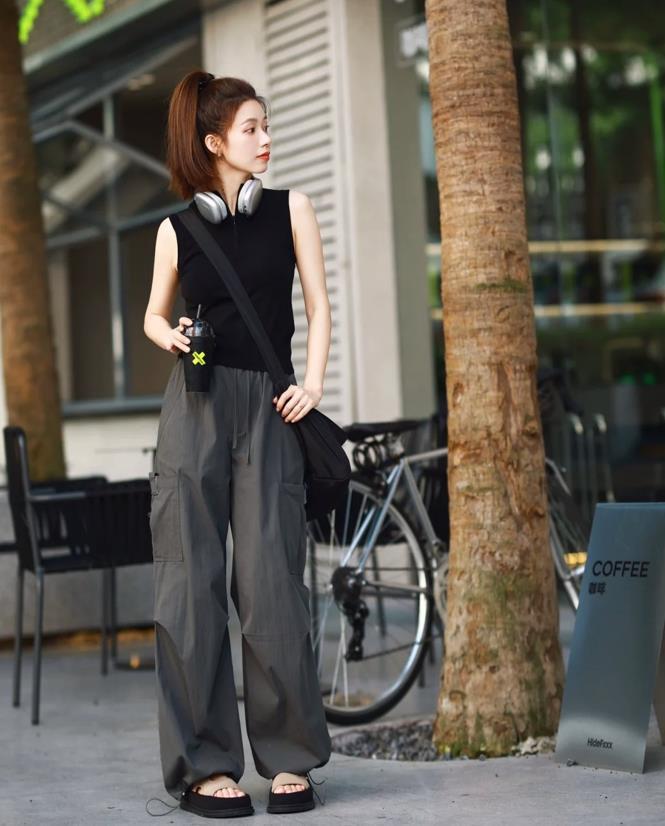 特別喜歡這種版型寬鬆的短褲,最藏肉顯瘦了,小個子女生記得要把腰線比例給提高起來,這樣才能更顯腿長和高挑。