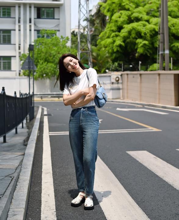 夏天的穿搭,就是要簡單一些纔好啊,白色t恤,很基礎簡約的款式,不管怎麼搭配都不會出錯,搭配小腳牛仔褲,加上一雙羅馬涼鞋,隨性舒適又自在。