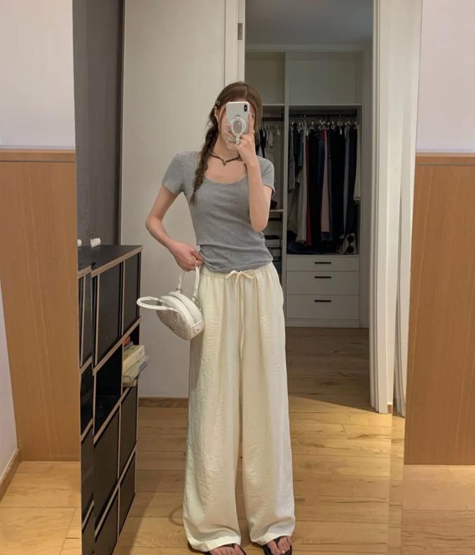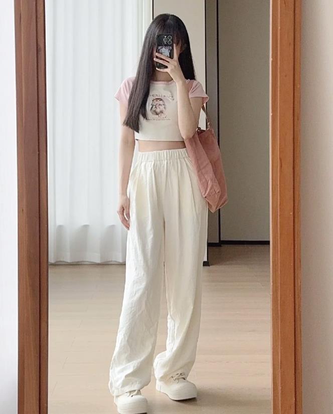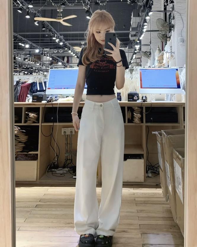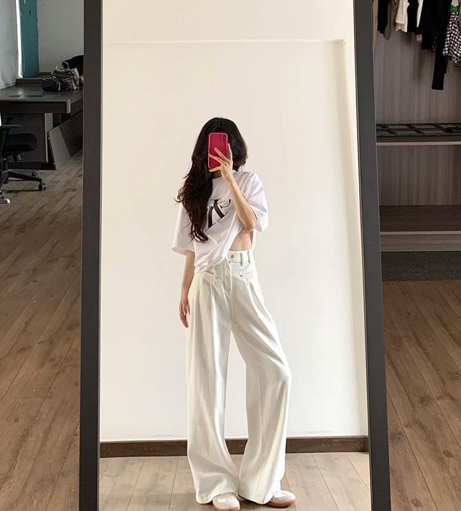 今年夏天最流行的褲子非白褲子莫屬,垂墜感和版型都很正的款式,高腰的設計,輕鬆就可以提高腰線比例,還能拉長腿部線條。上衣選擇一件短款t恤,上短下長的搭配,輕鬆優化了整個身材比例,顯瘦又顯腿長。