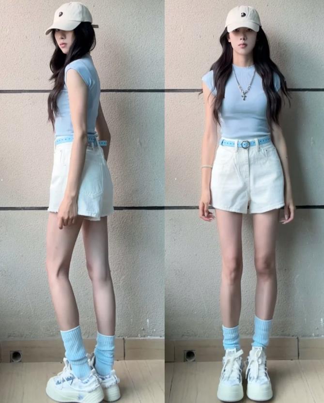 沒有一條短褲的夏天,又怎能完整呢?很百搭的白色短褲,應對悶熱的夏天足夠了,穿起來很清爽涼快,這種褲子配什麼上衣都好看。淺藍色的短袖與白色短褲相配,真的太吸睛洋氣了。