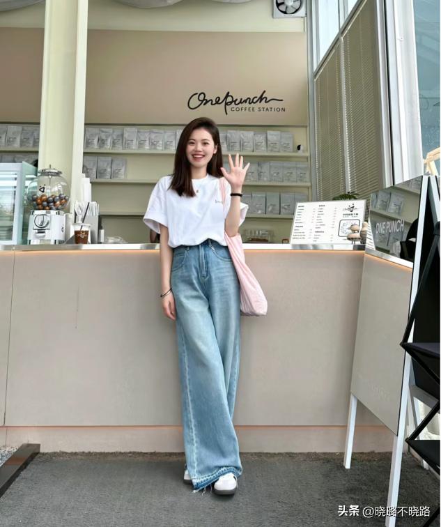 腿型不完美、大腿肉肉多的女人,儘可能的選擇拖地款式的闊腿褲,加寬的褲筒揚長避短更加遮肉,加長的褲腿拉伸線條突出比例,再搭配上一雙米色或者白色系列的德訓鞋,休閒運動風拉滿。