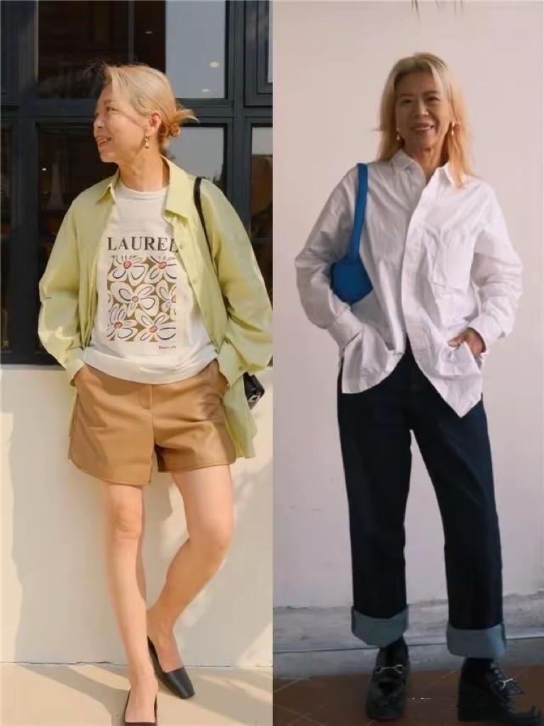 襯衫也屬於一種無齡感單品,不管多大年紀都可以用它來凹造型。大齡女性,不要選擇版型太鬆款、面料軟塌的襯衫,容易顯胖。