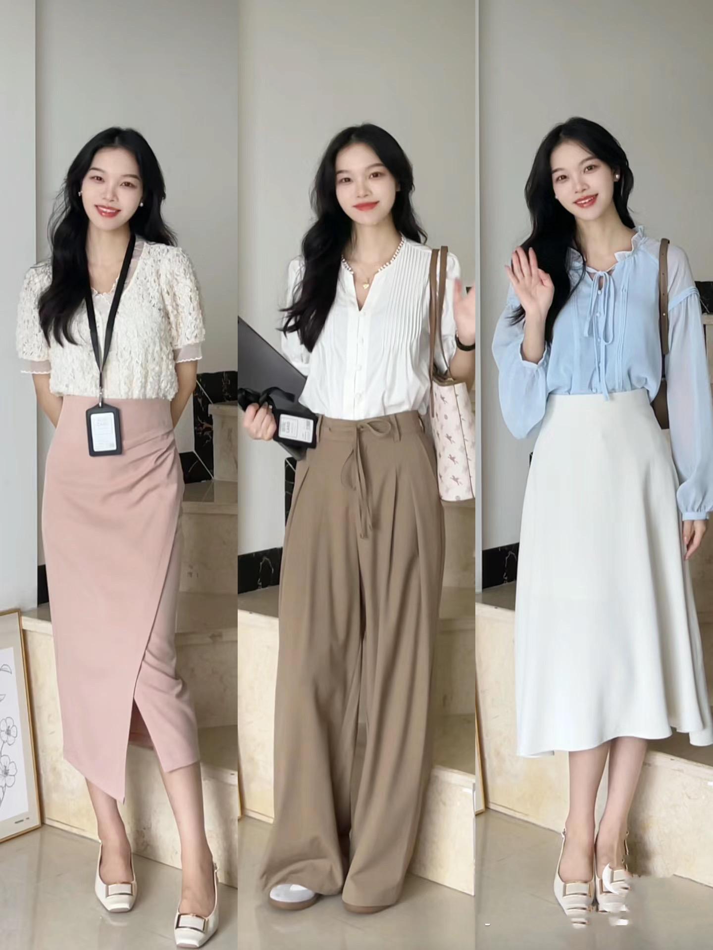 高腰的半身裙,或者闊腿褲,同樣可以優化比例。如果是想要塑造優雅女神範,就配高腰的半身裙。如果喜歡大方隨性的氛圍,就配高腰闊腿褲。