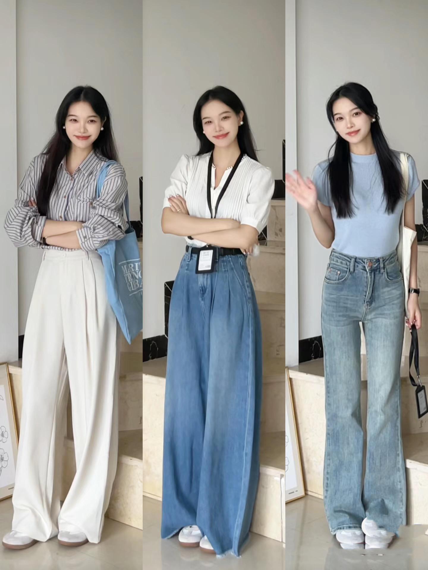 白襯衫配一條高腰的直筒牛仔褲,簡簡單單又非常利落。清爽的白襯衫+做舊的水洗藍直筒牛仔褲,簡單清爽也很顯高、顯腿長。