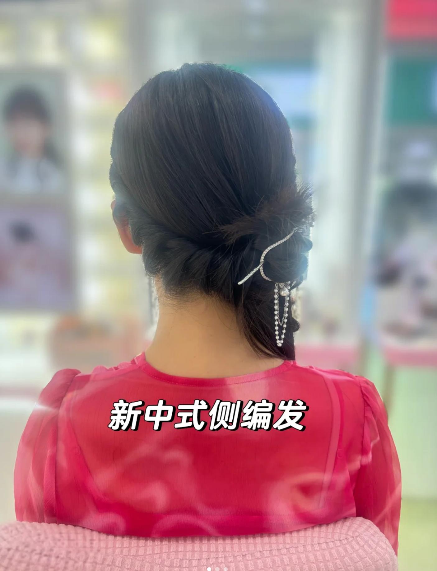 ②新中式側盤發:新中式的側盤發,有一種清冷婉約的既視感,最好是長髮,留一點放下來,側邊低丸子+搭個簪子,更溫婉喔~