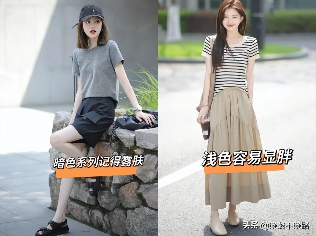1.暗色的組合更加遮肉,但是記得局部露膚