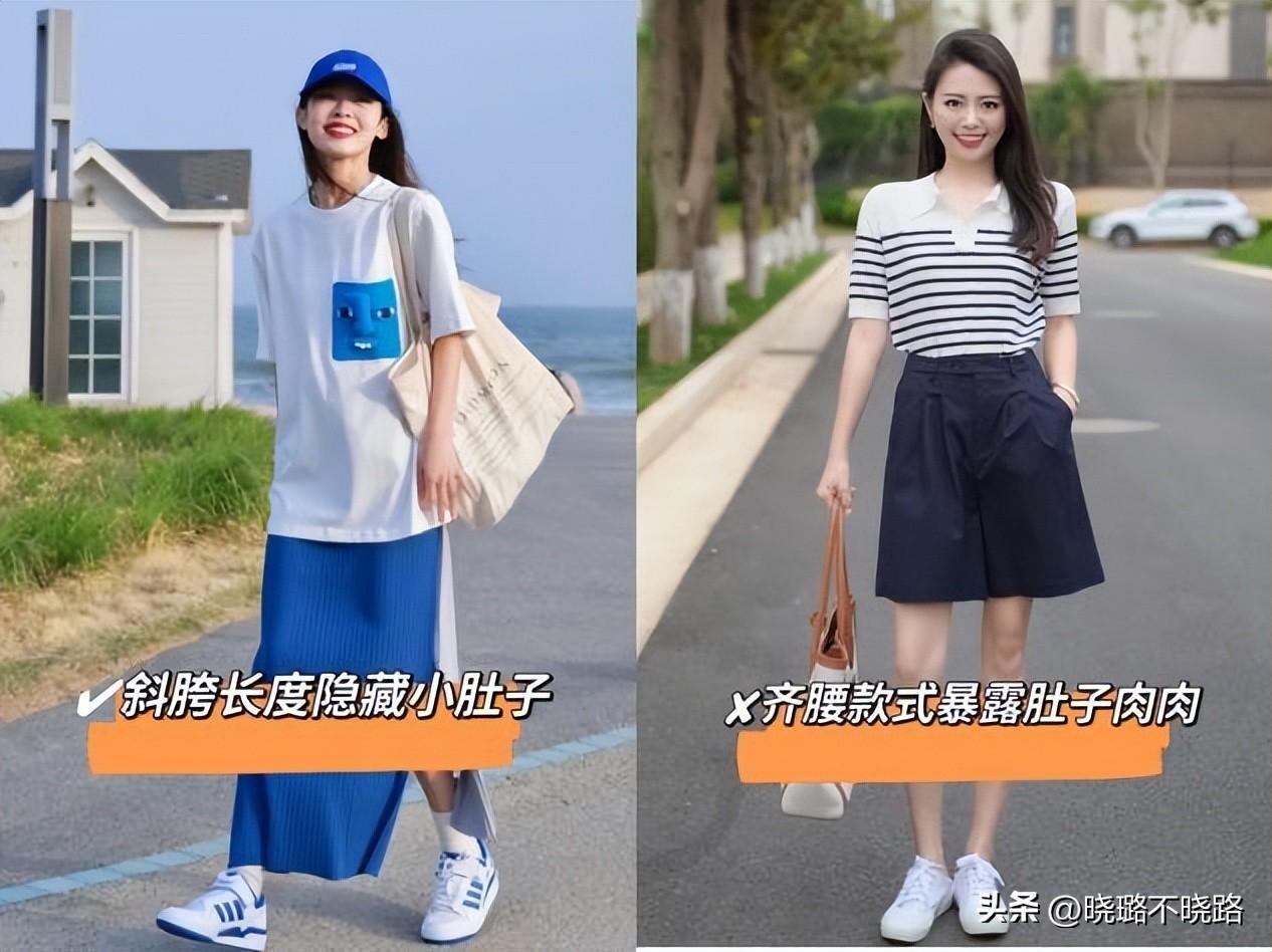 想要遮擋住小肚子一定不要穿露臍或者齊腰的T恤,否則分分鐘暴露出臃腫肥胖的肚子,可以直接選擇遮擋住腰胯的中長款式,衣襬微微的寬鬆一些,這樣纔可以更好地將小肚腩隱藏起來,視覺上呈現出纖細苗條的好狀態。