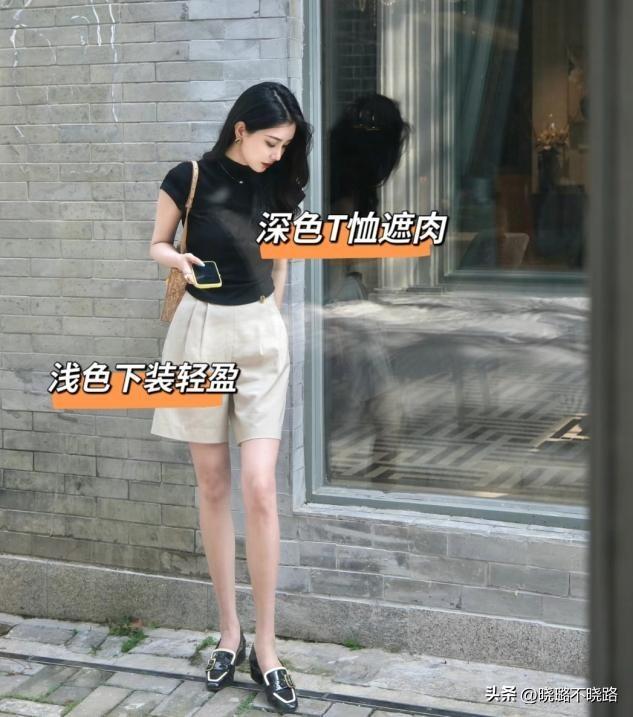 如果身材比例不好,容易給人五五分的感覺,那麼一定要控制好下裝的長度,無論短裙還是短褲,儘量選擇膝蓋以上的位置,這樣纔可以滿足顯高顯瘦的訴求,同時還可以製造好比例。