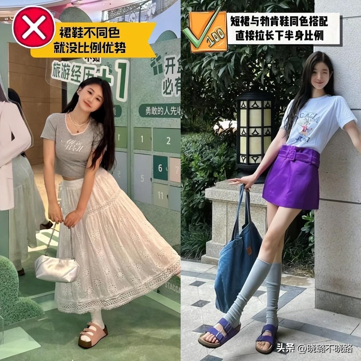 ③ 腿型比較短促,還是與短裙結合更適宜