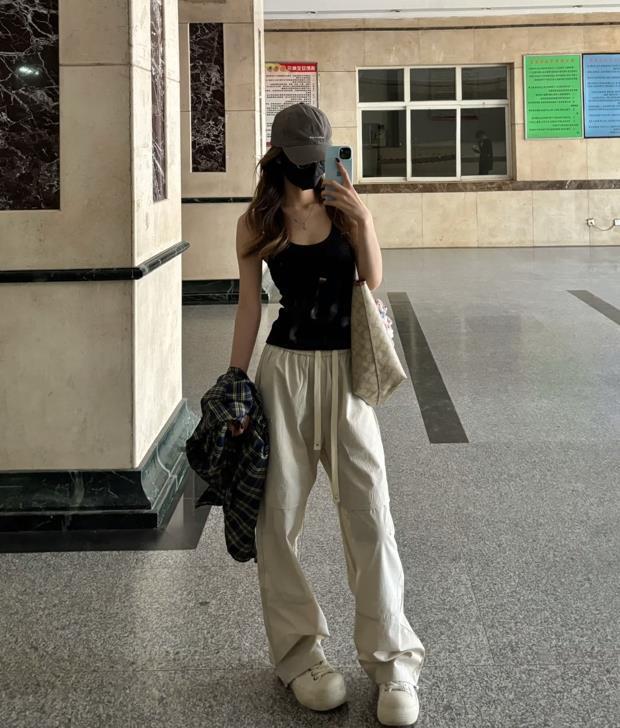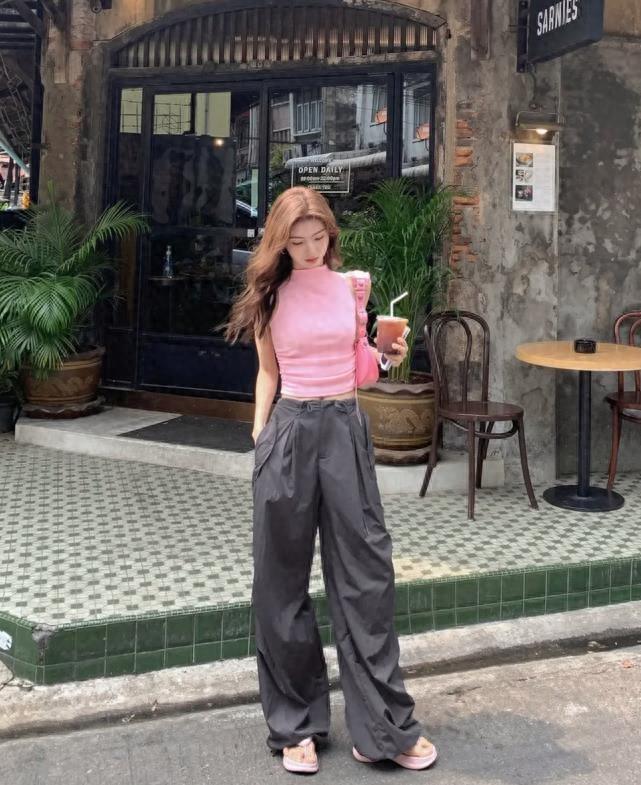 超級適合梨形身材的一套穿搭,小背心+寬鬆的褲子,這麼一條褲子,巨遮肉顯瘦的,很適合梨形身材,上緊下松,超級喜歡這種鬆弛感,出門隨便踩着一雙涼拖鞋就行了。