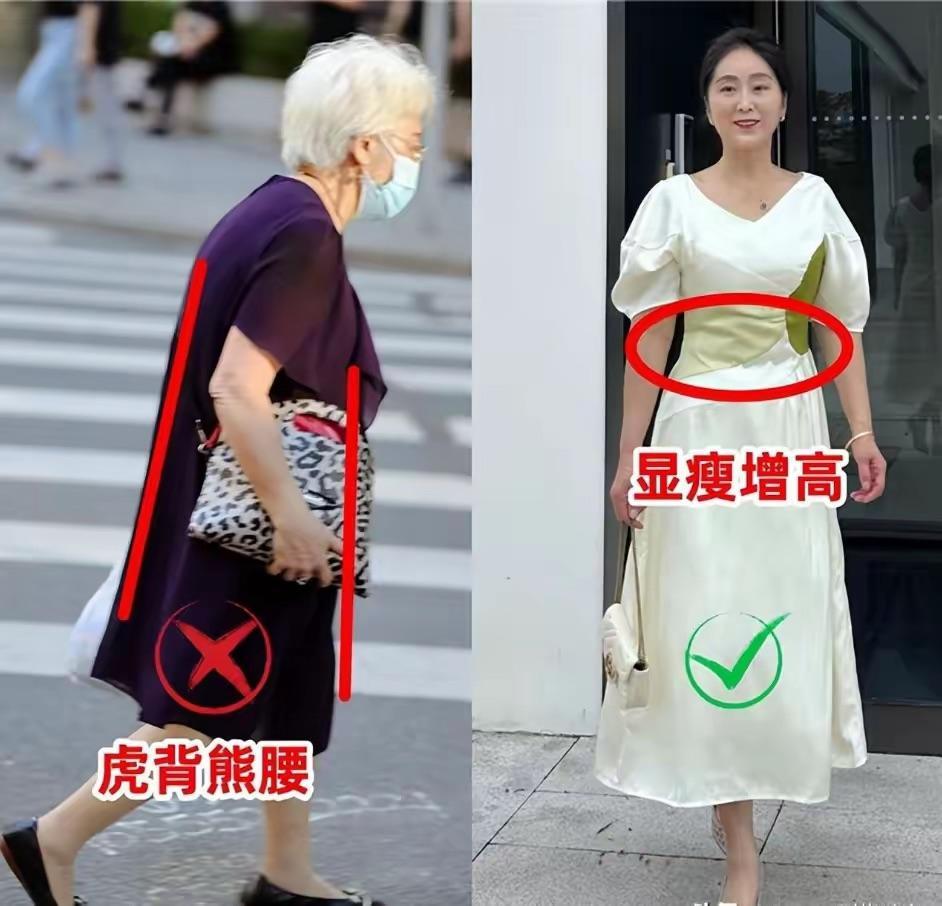 奶奶輩的女人,穿衣搭配一定不要太邋遢。即便是寬鬆的連衣裙,也需要搭配收腰的設計。收腰的細節,是表現出體面感、時髦範的關鍵。