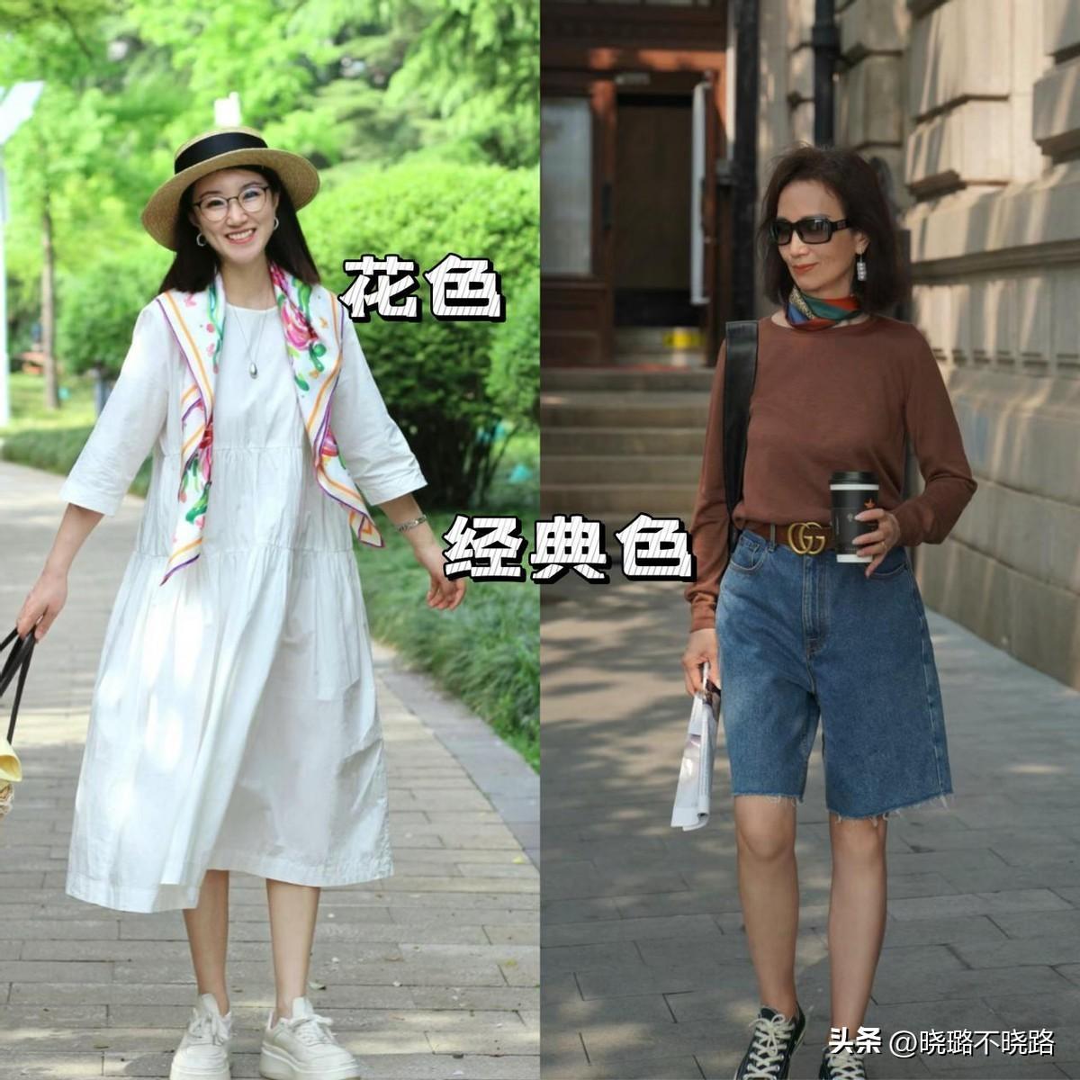 配色經典簡約的服裝單品,駕馭起來是非常輕鬆的,不挑剔膚色還不容易被淘汰。但大齡女人在搭配經典色服裝時,就要選擇印花元素的絲巾了。