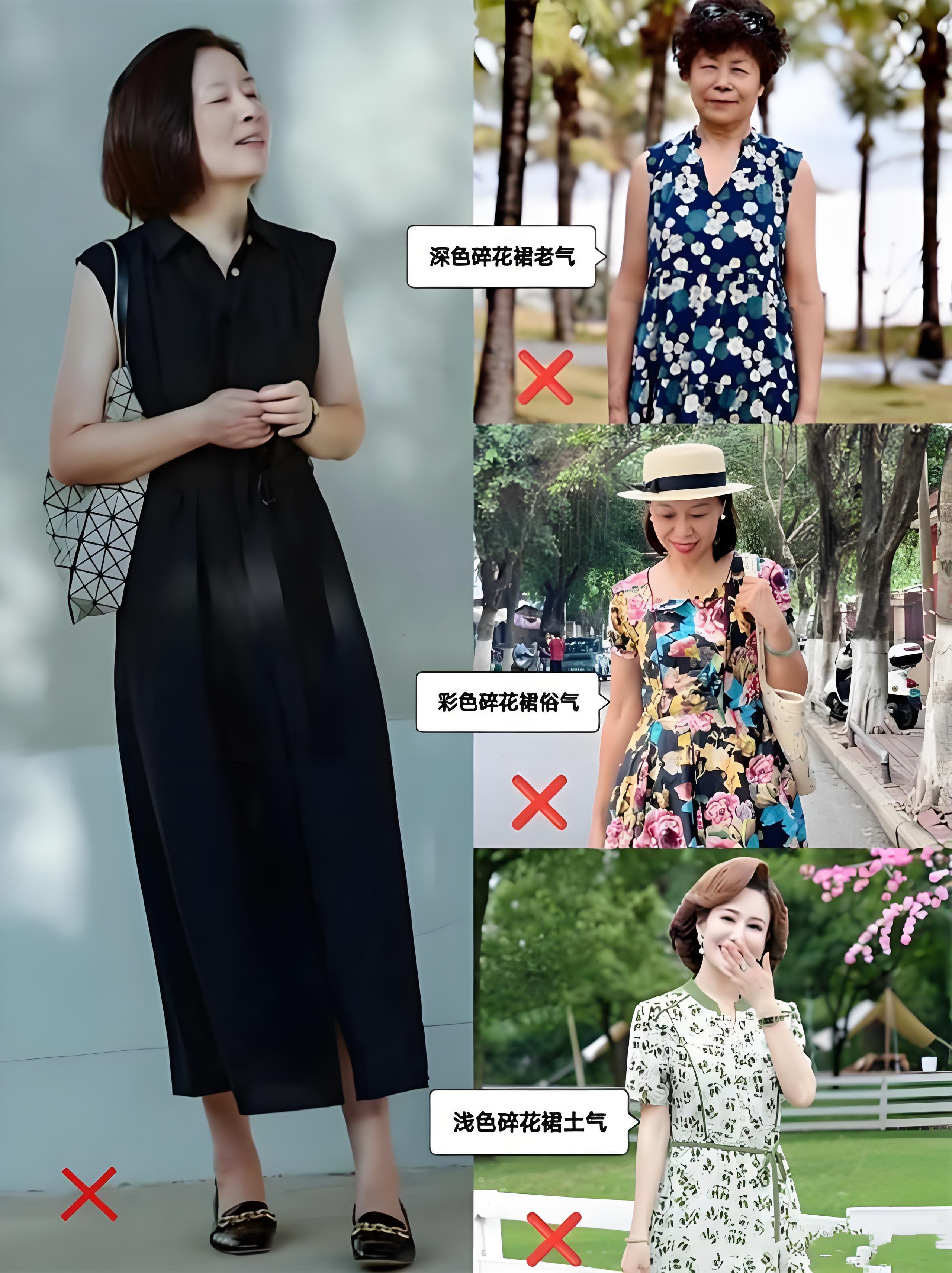 五六十歲的女人穿裙子,儘量避免太寬鬆、或者太緊身的款式。太寬鬆的裙襬、很容易顯胖,太緊身的裙子,降低了舒適度也不夠大方。