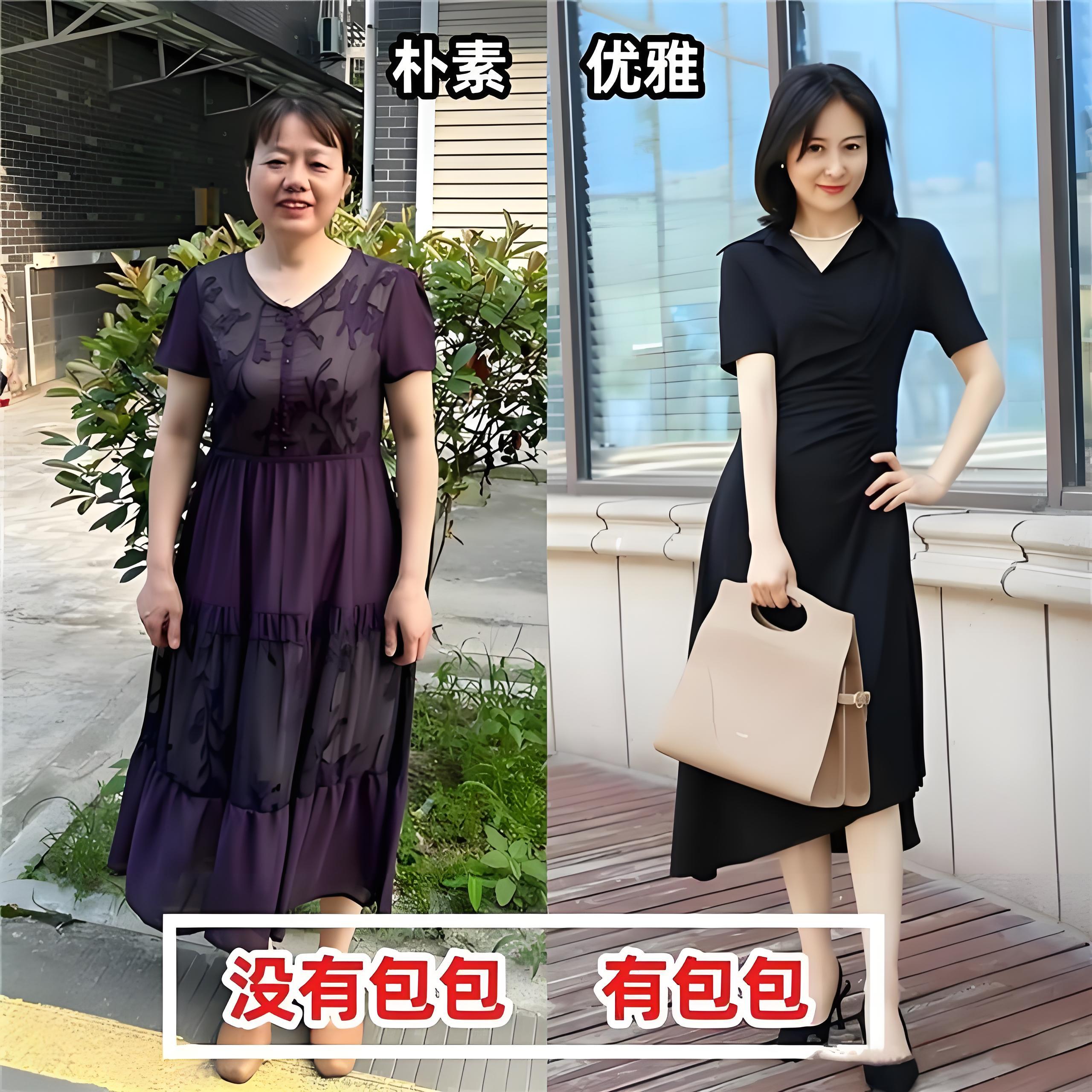 廉價的連衣裙,顯得體型豐腴飽滿、非常的厚重。相對而言收腰、修身、且剪裁精緻考究的連衣裙,就更加顯瘦高級了。