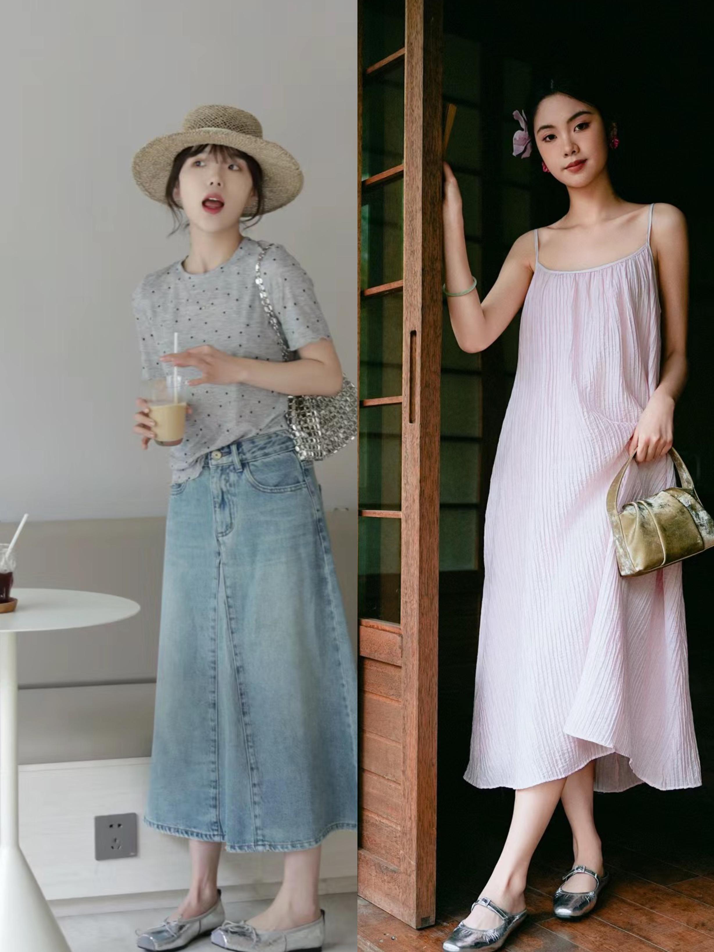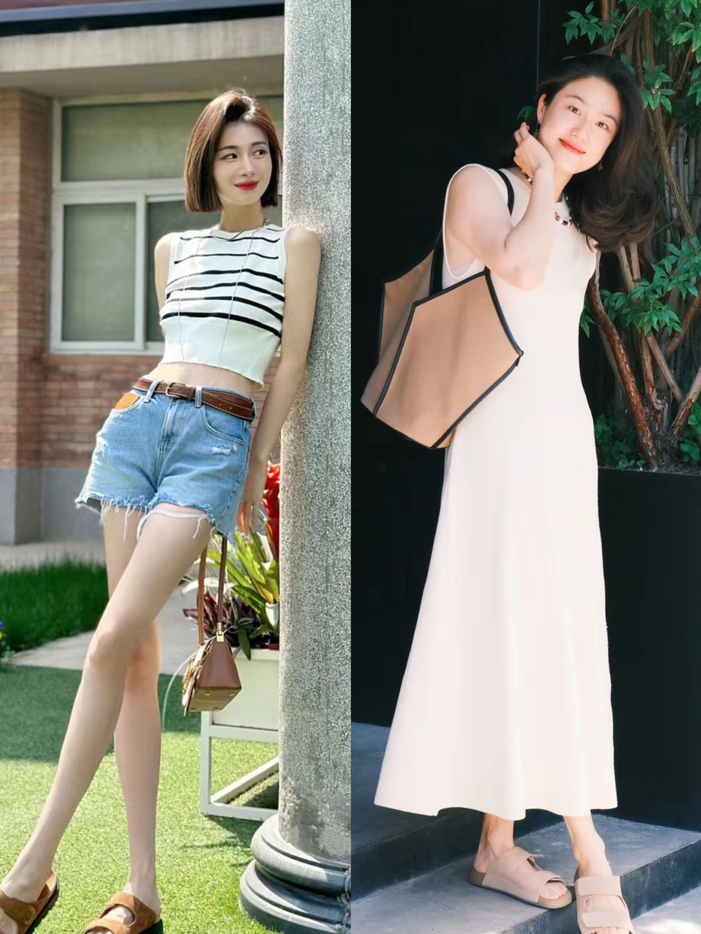 在穿衣搭配上,我們可以利用適當的留白,來營造夏日呼吸感。比如吊帶的連衣裙、或者露出小腿的半身裙,配小銀鞋都更輕便舒適、也擁有度假的慵懶氛圍。