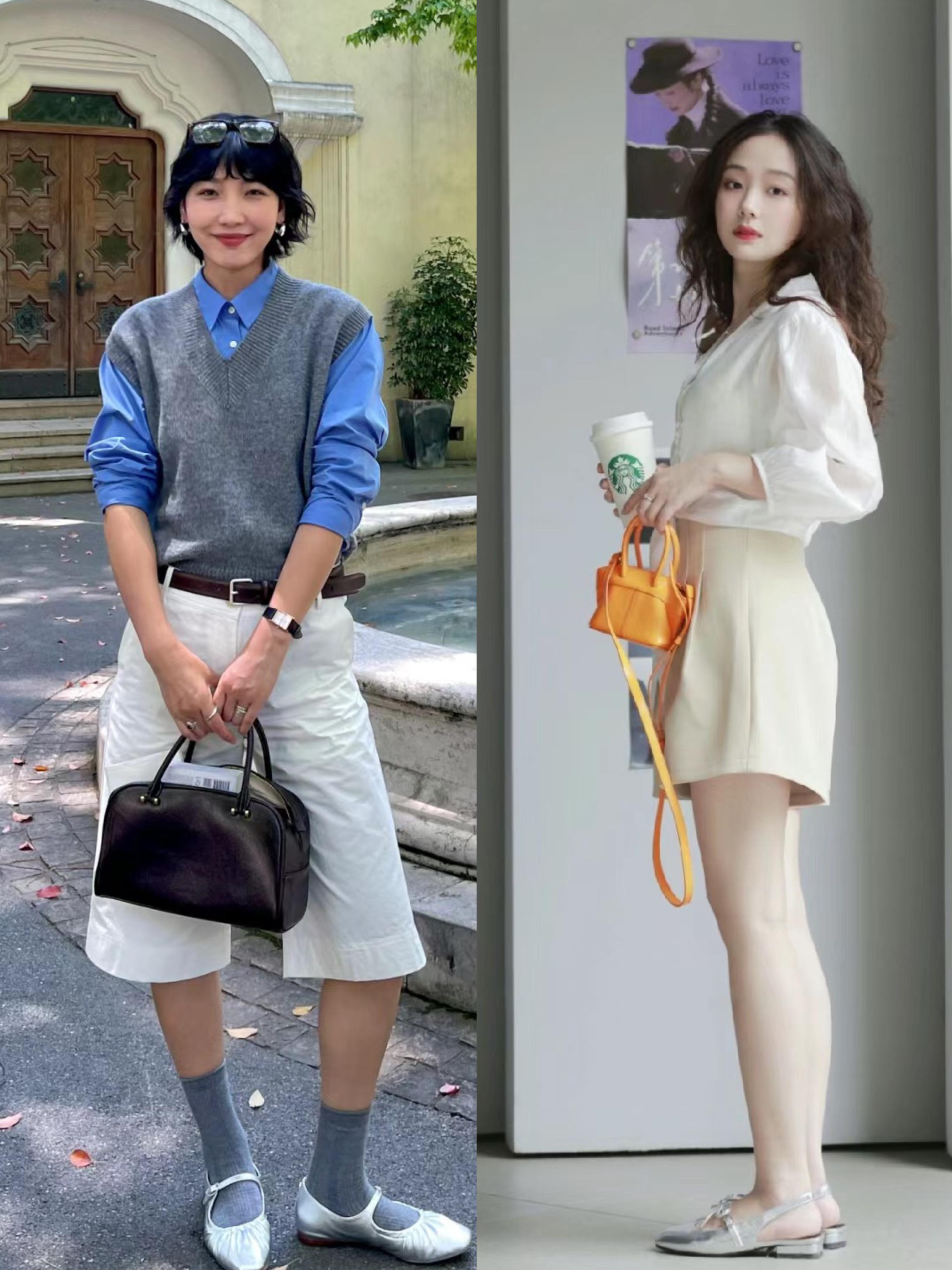 襯衫+中褲,搭配瑪麗珍單鞋,有一種與生俱來的書卷氣。如果配上灰色襪子,就更復古了一些。想要清爽幹練,白襯衫+卡其色短褲+小銀鞋也能完美get。