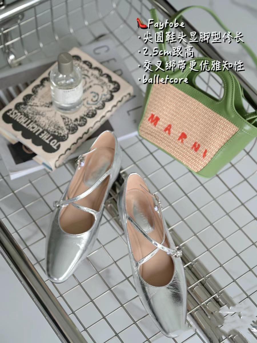 尖圓頭的小銀鞋,整體是一種更修長的線條美。尖圓頭對於腳趾的包容性更強,擠腳的概率大大降低,如果腳型偏寬、偏厚的話,都建議選擇尖圓頭的小銀鞋。