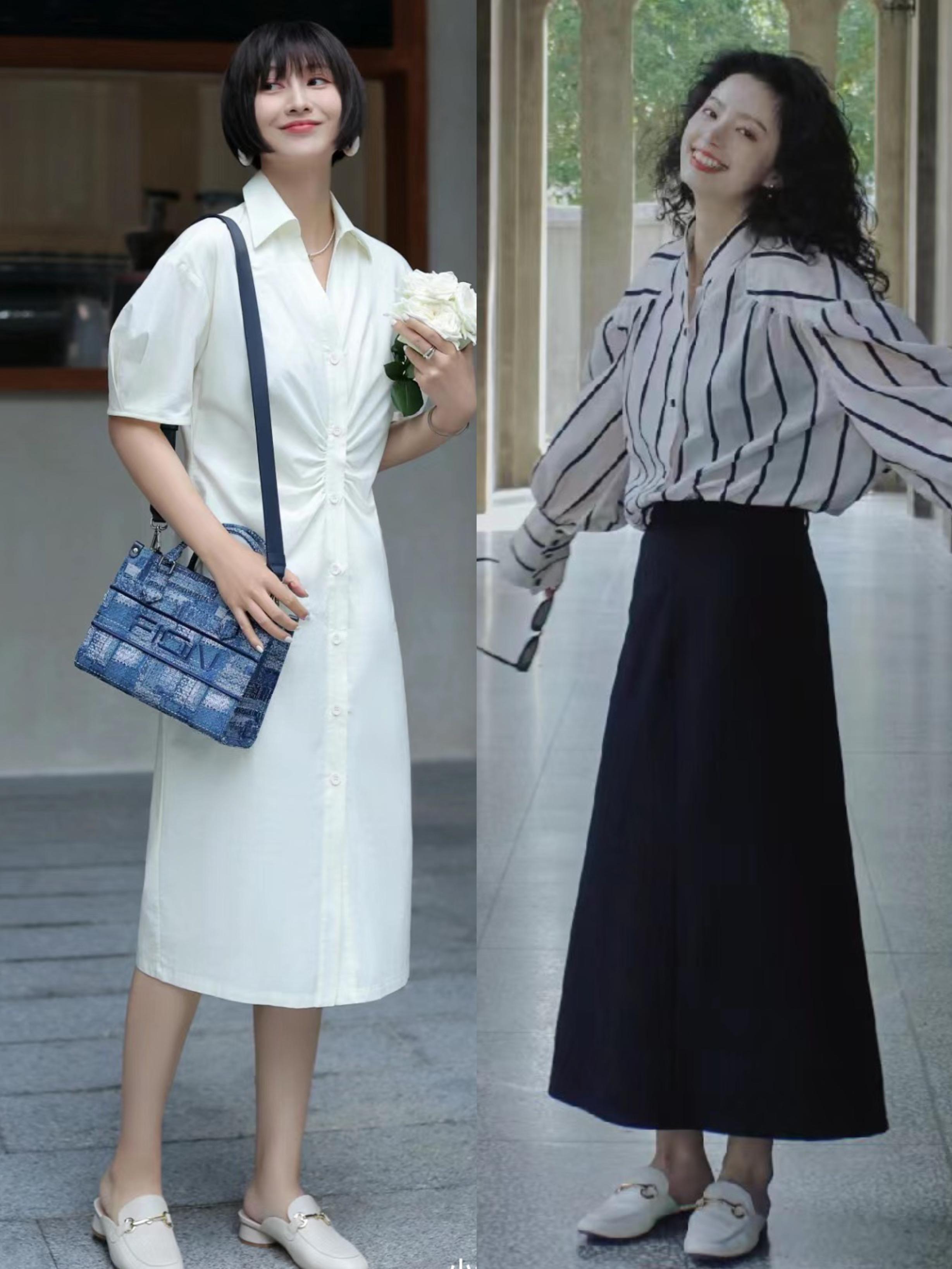 寬鬆且收腰的襯衫裙,帶着優雅與體面的氛圍,讓我們的穿搭更爲顯貴。可以選擇與襯身裙同色、或者與其他配飾同色的穆勒鞋,塑造鞋頭高級範。