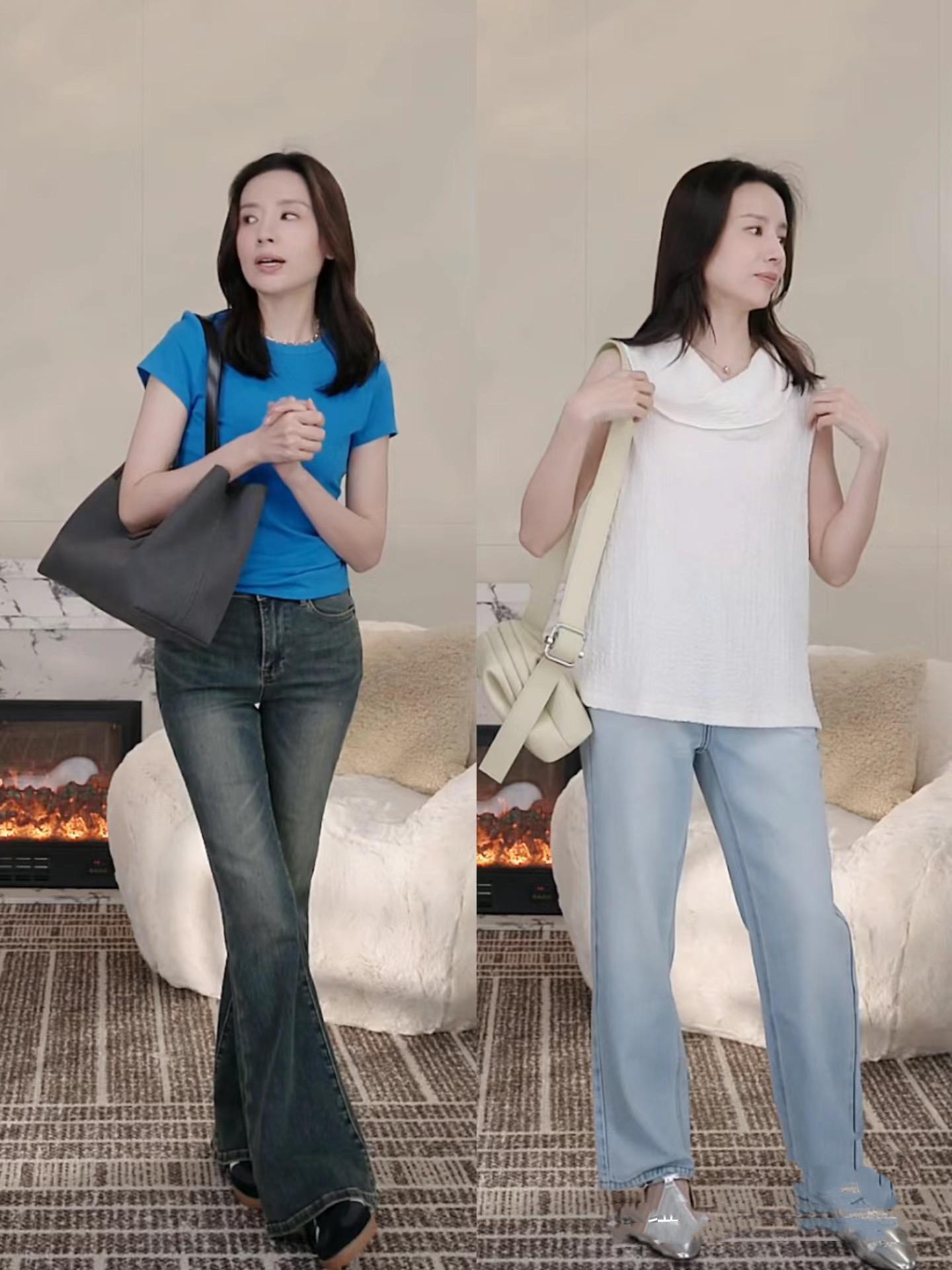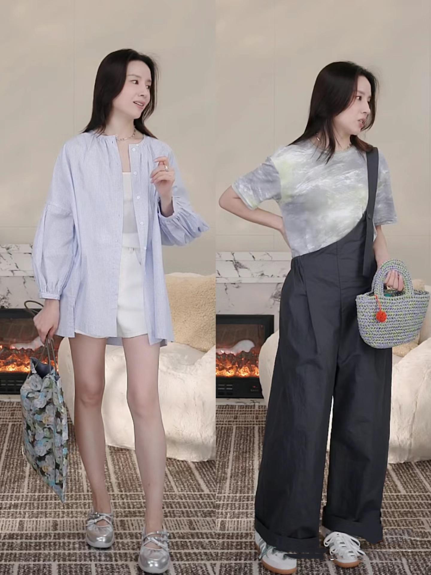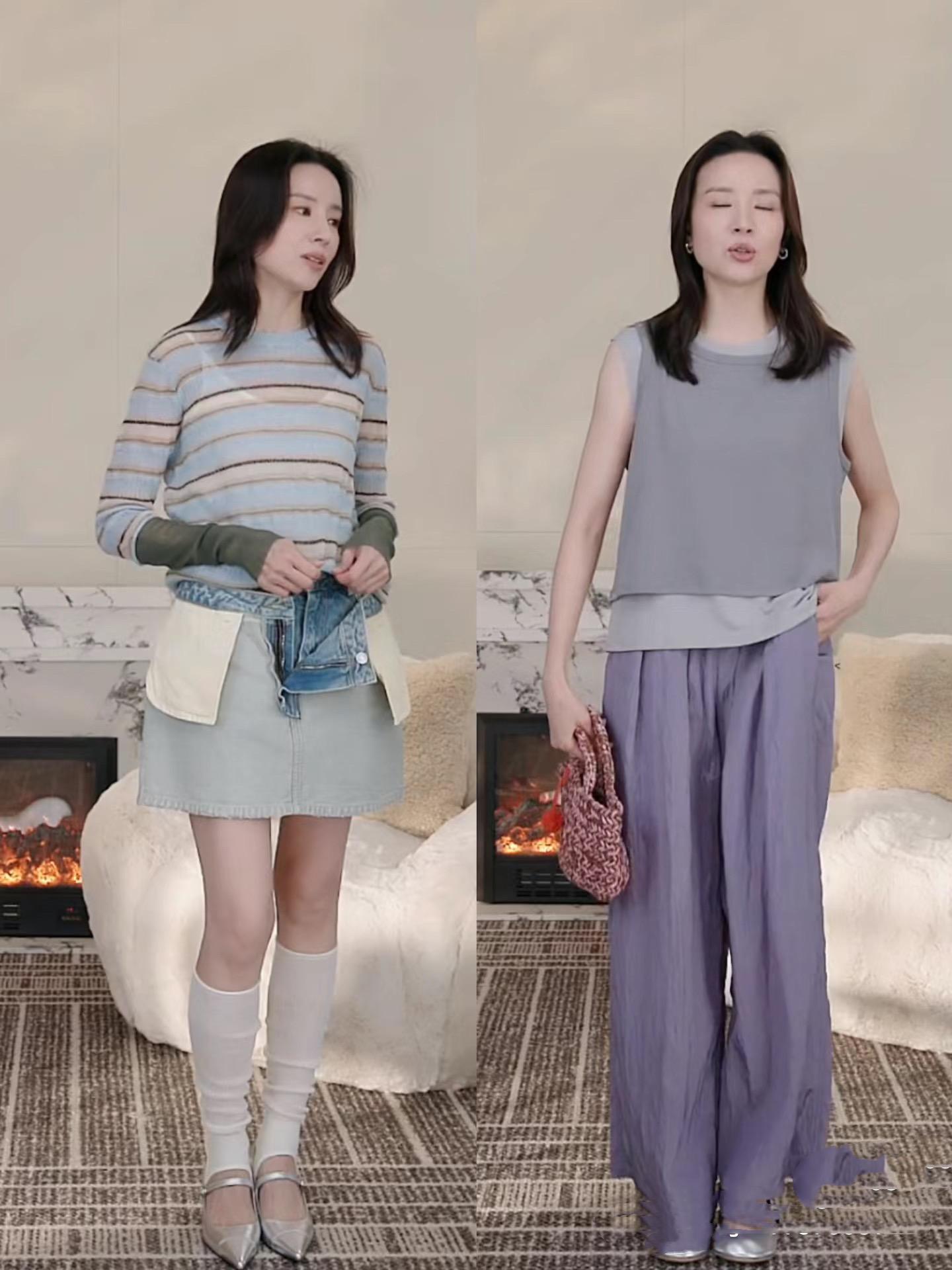 藍白配色,真的是很溫婉啊,有一種清新甜美的氛圍。董潔年過四十,還有少女範,與她的穿搭技巧密不可分。
