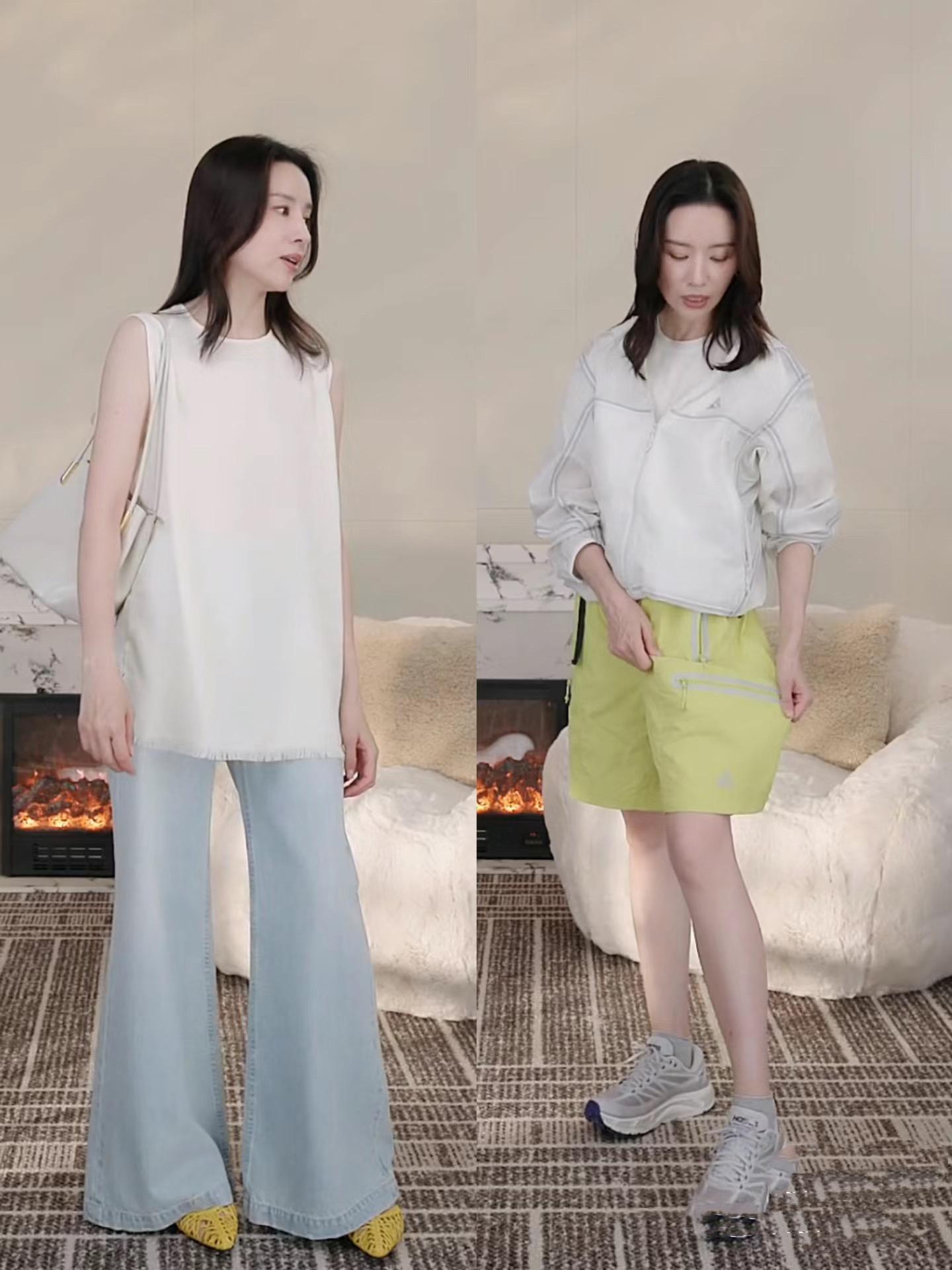 無袖背心的清涼,亞麻闊腿褲的舒適,給人一種與生俱來的舒適感。亞麻闊腿褲,可以融入冰絲材質,會更加舒適透氣一些。
