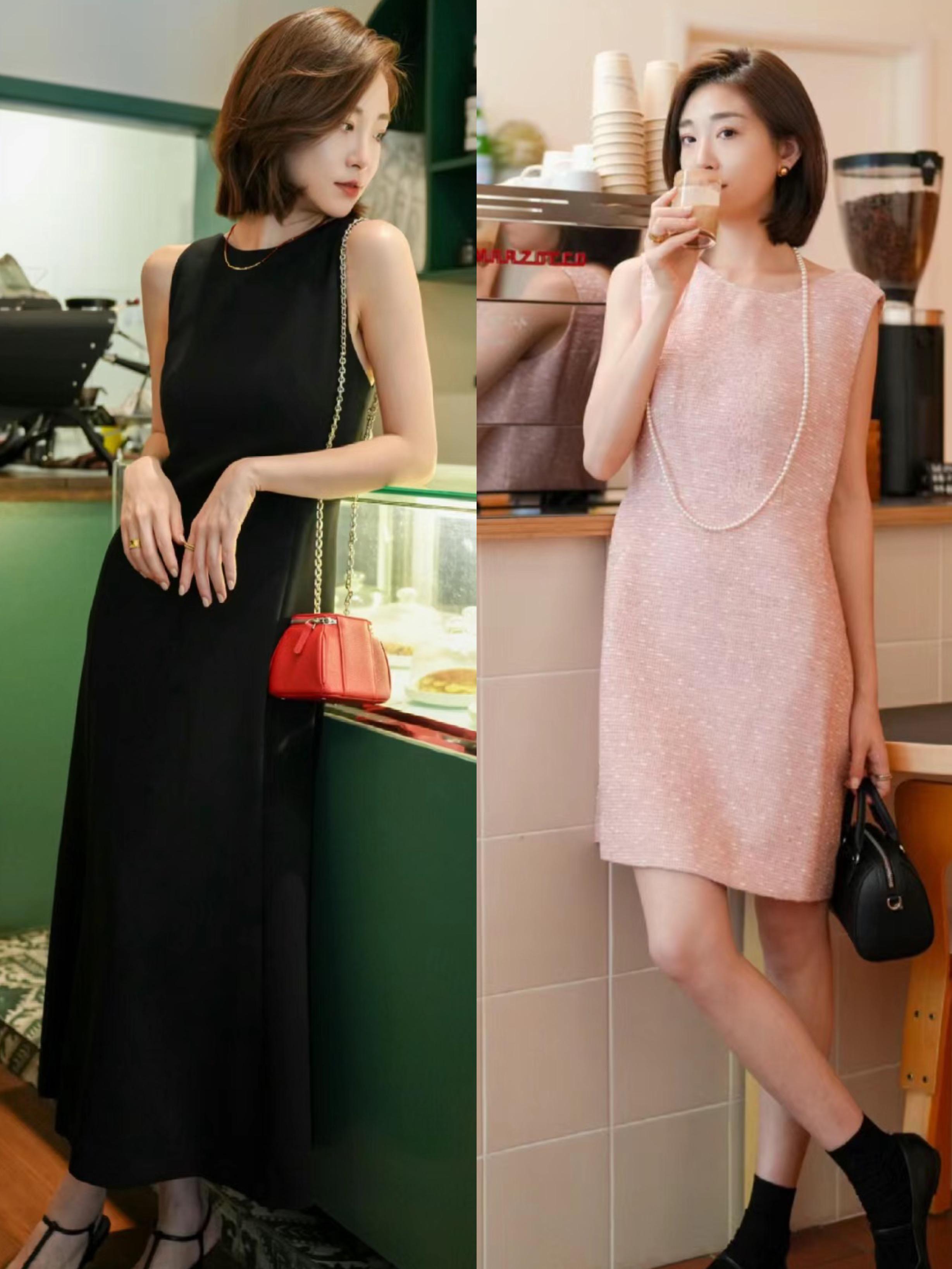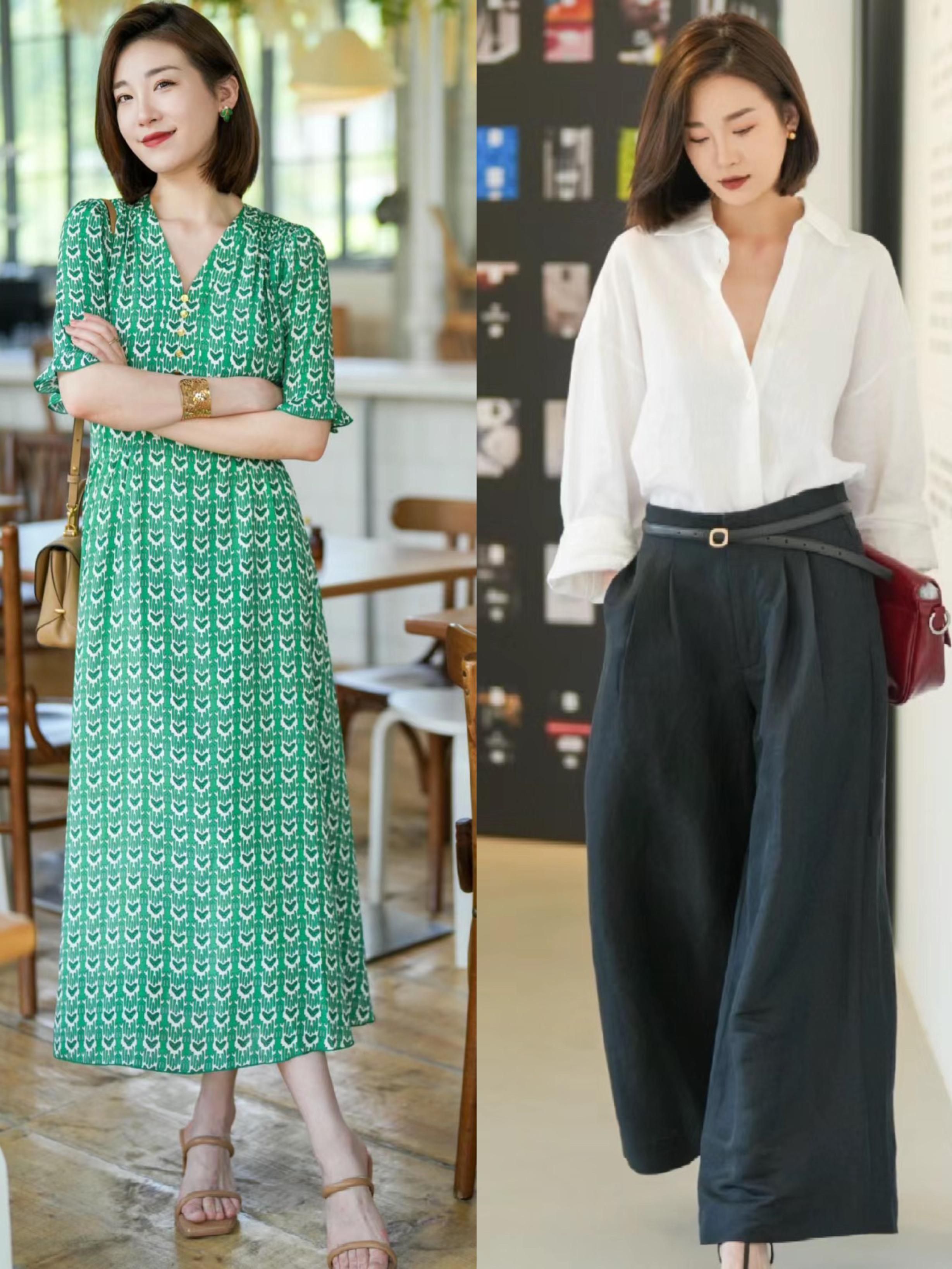 夏天裏的套裝也很多,西服短褲套裝、馬甲+西裝褲套裝,都比較符合熟齡女性的氣質美。而更溫柔知性的連衣裙,隨便踩一雙輕便的鞋子就可以出門,也格外實用。